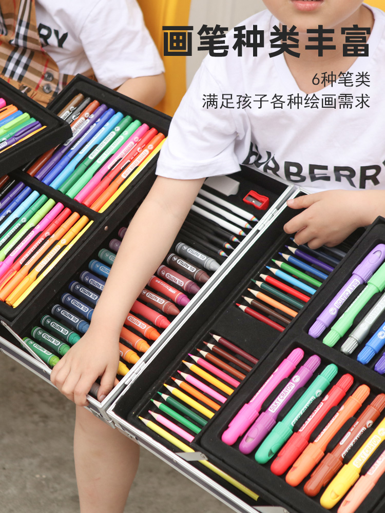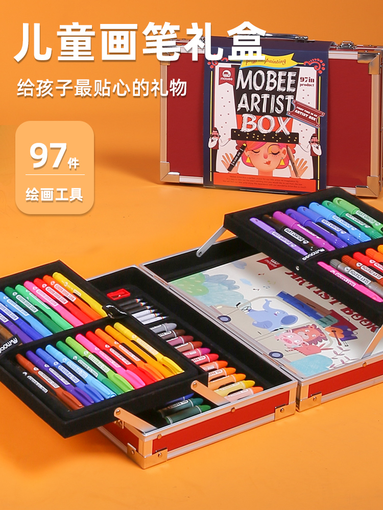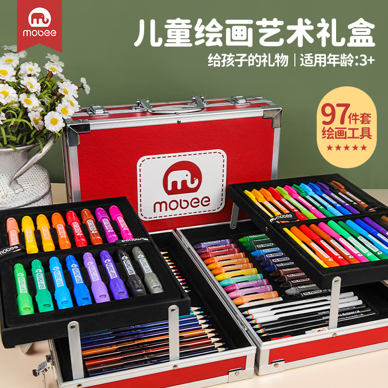 mobee儿童水彩笔画笔礼盒蜡笔画画工具小学生绘画套装