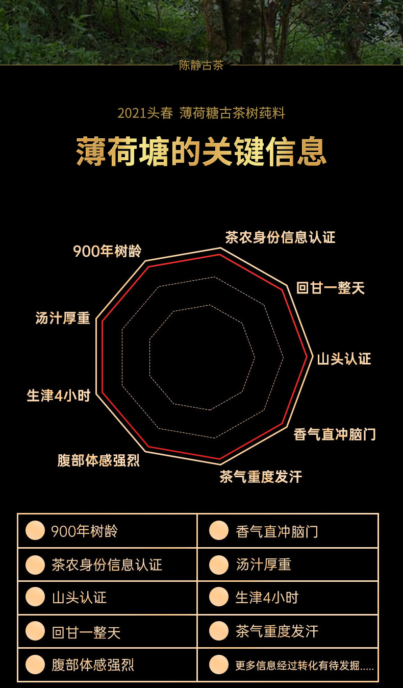70 陈静2021年薄荷塘古树春茶云南易武普洱茶生茶饼357g饼茶