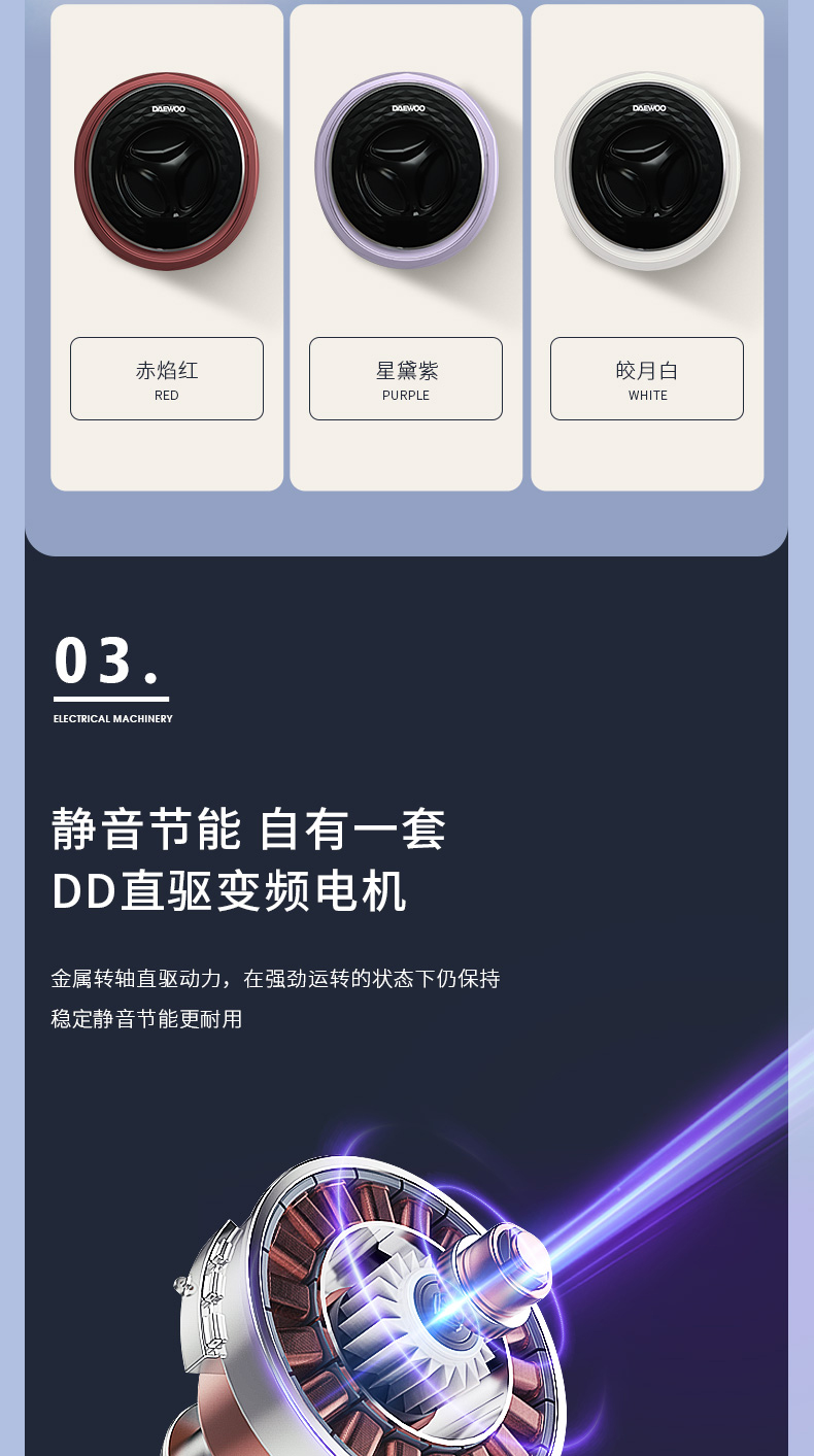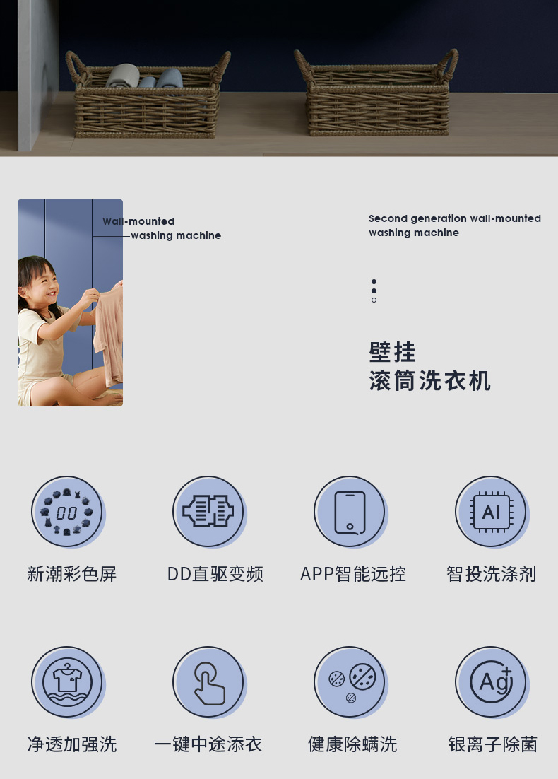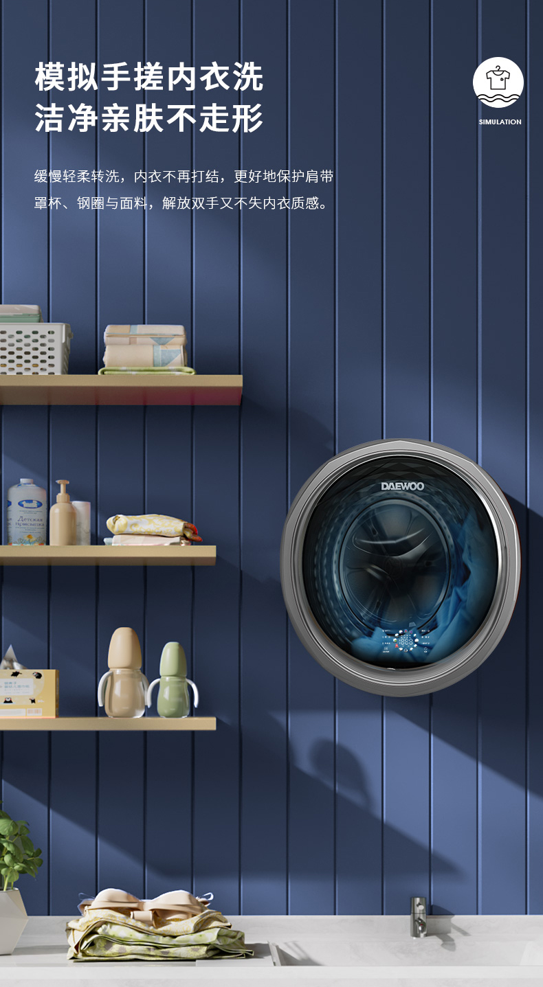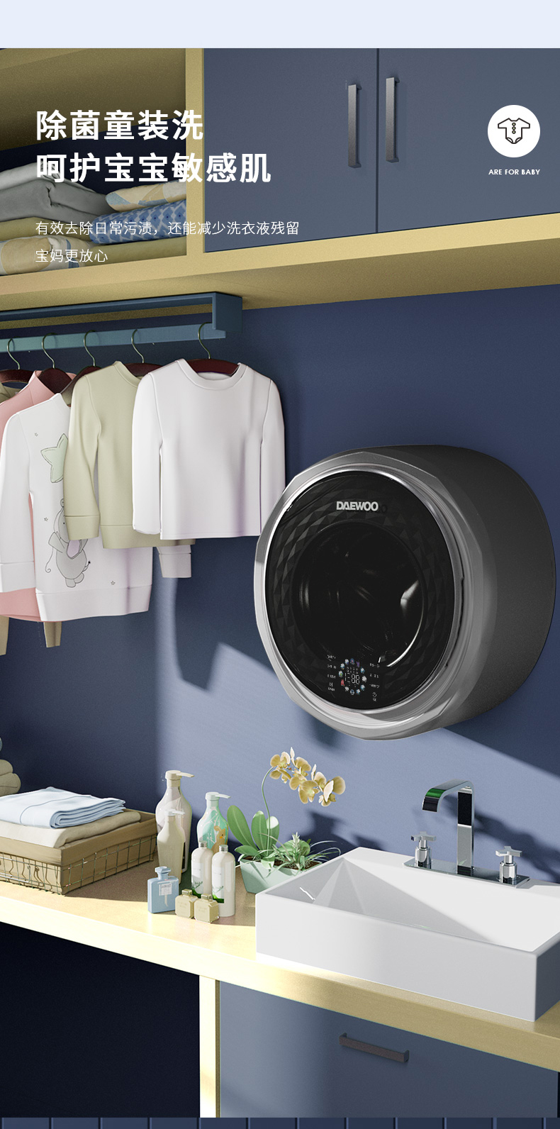大宇(DAEWOO)壁挂洗衣机 全自动变频3KG迷你滚筒DY-BGX07