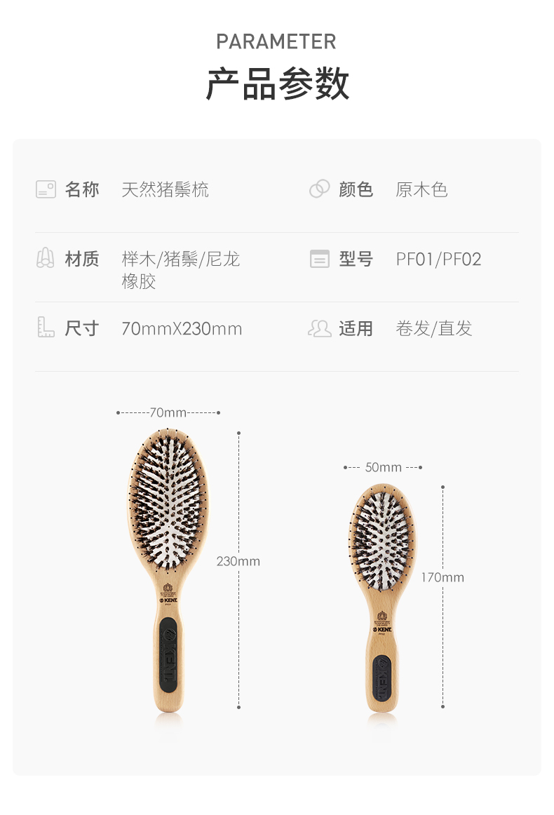 【焕新季】英国进口KENT肯特天然猪鬓毛梳子女顺美发气囊梳气垫梳养护按摩梳PF01-2303