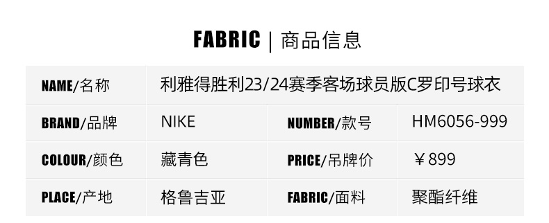 SFS正品 Nike耐克23/24赛季利雅得胜利客场球员版球衣HM6056-999