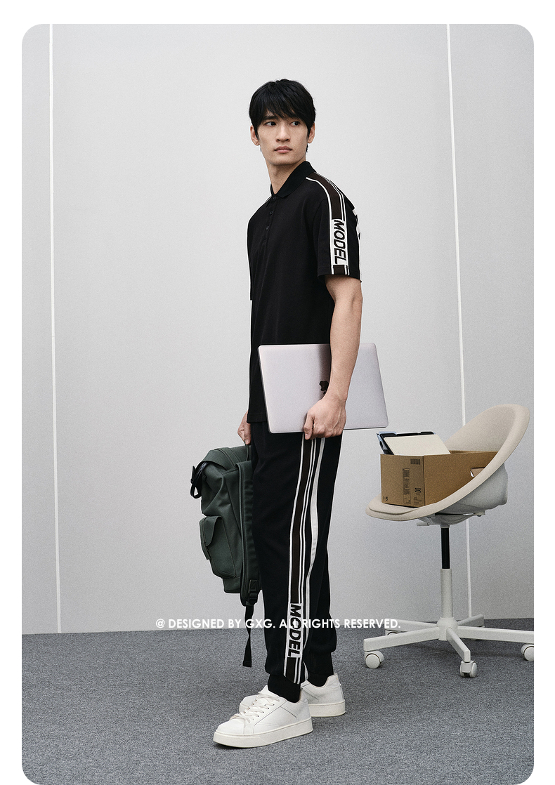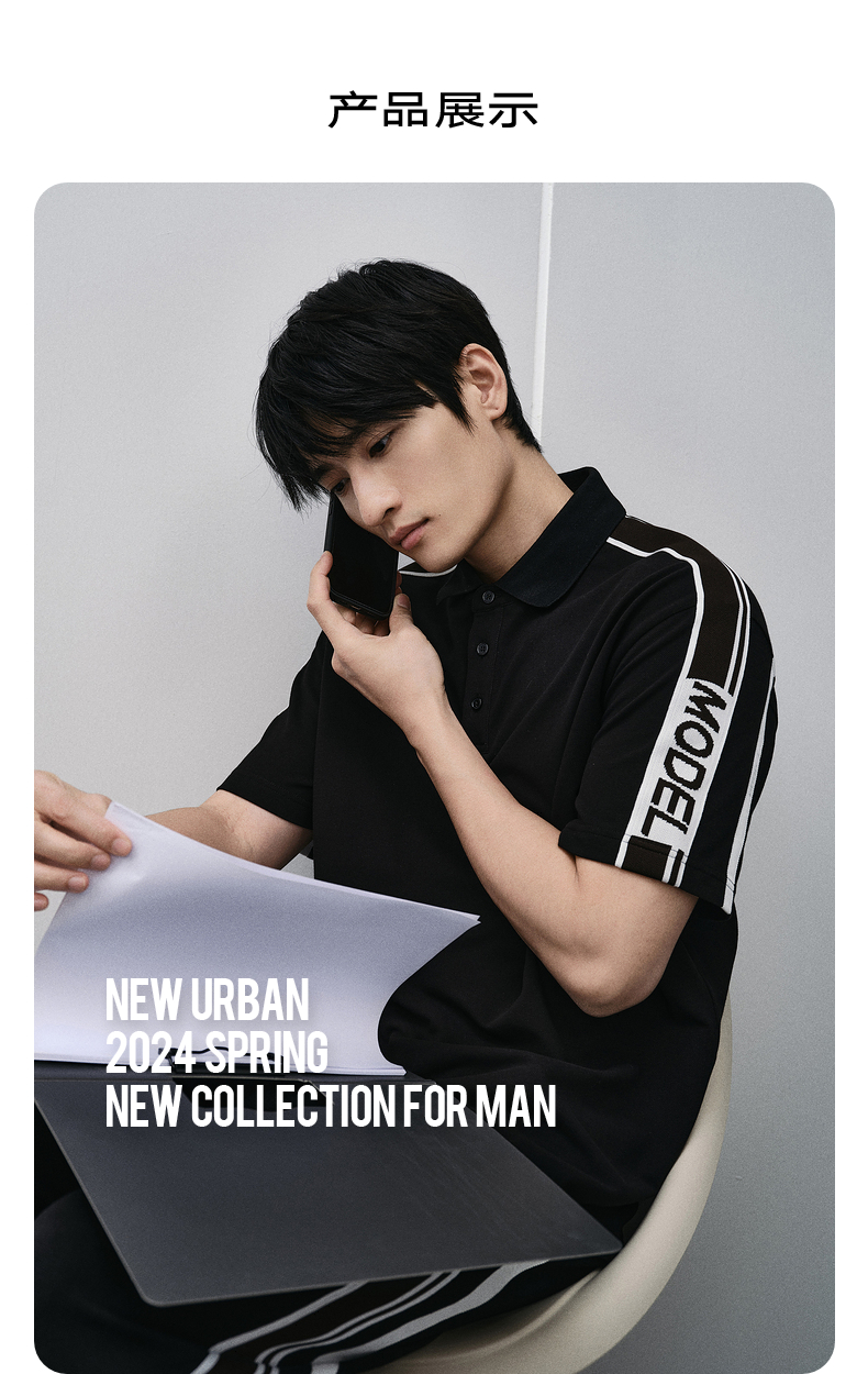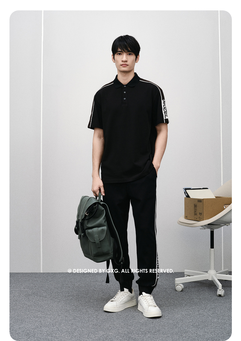 GXG男装 黑色通勤短袖POLO衫 2024年春季热卖GFX12400301