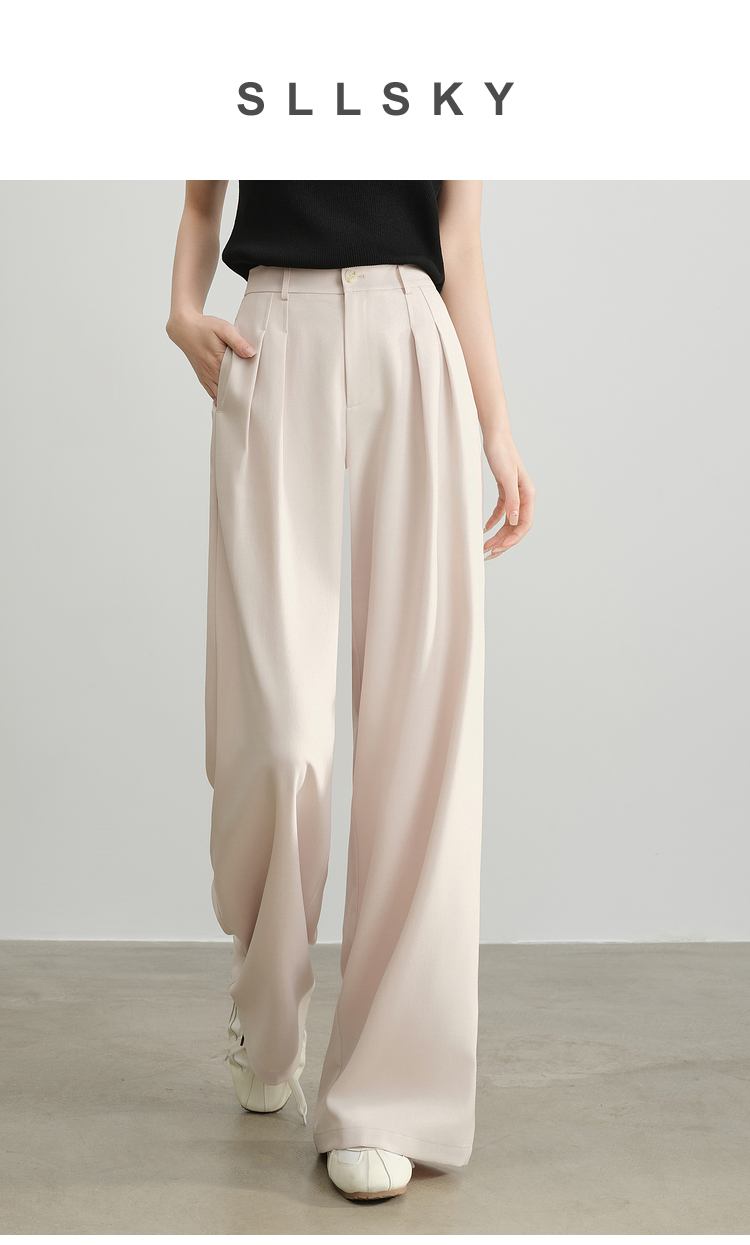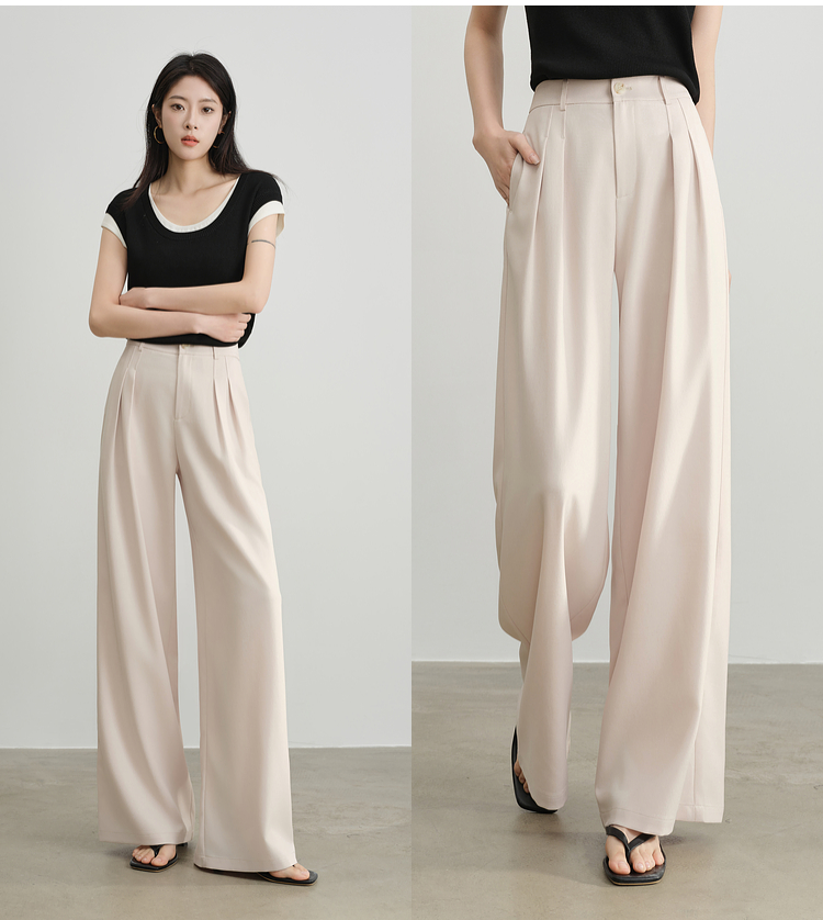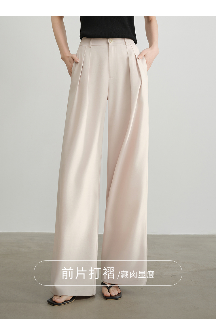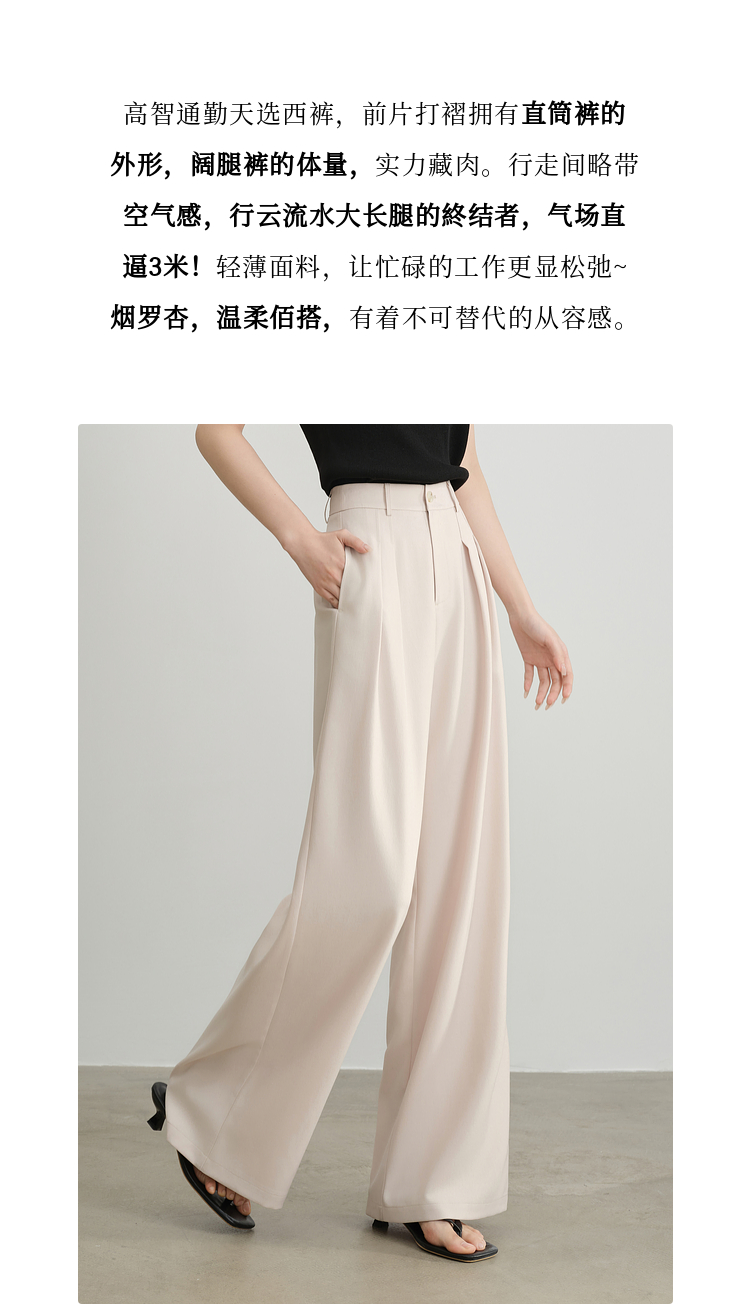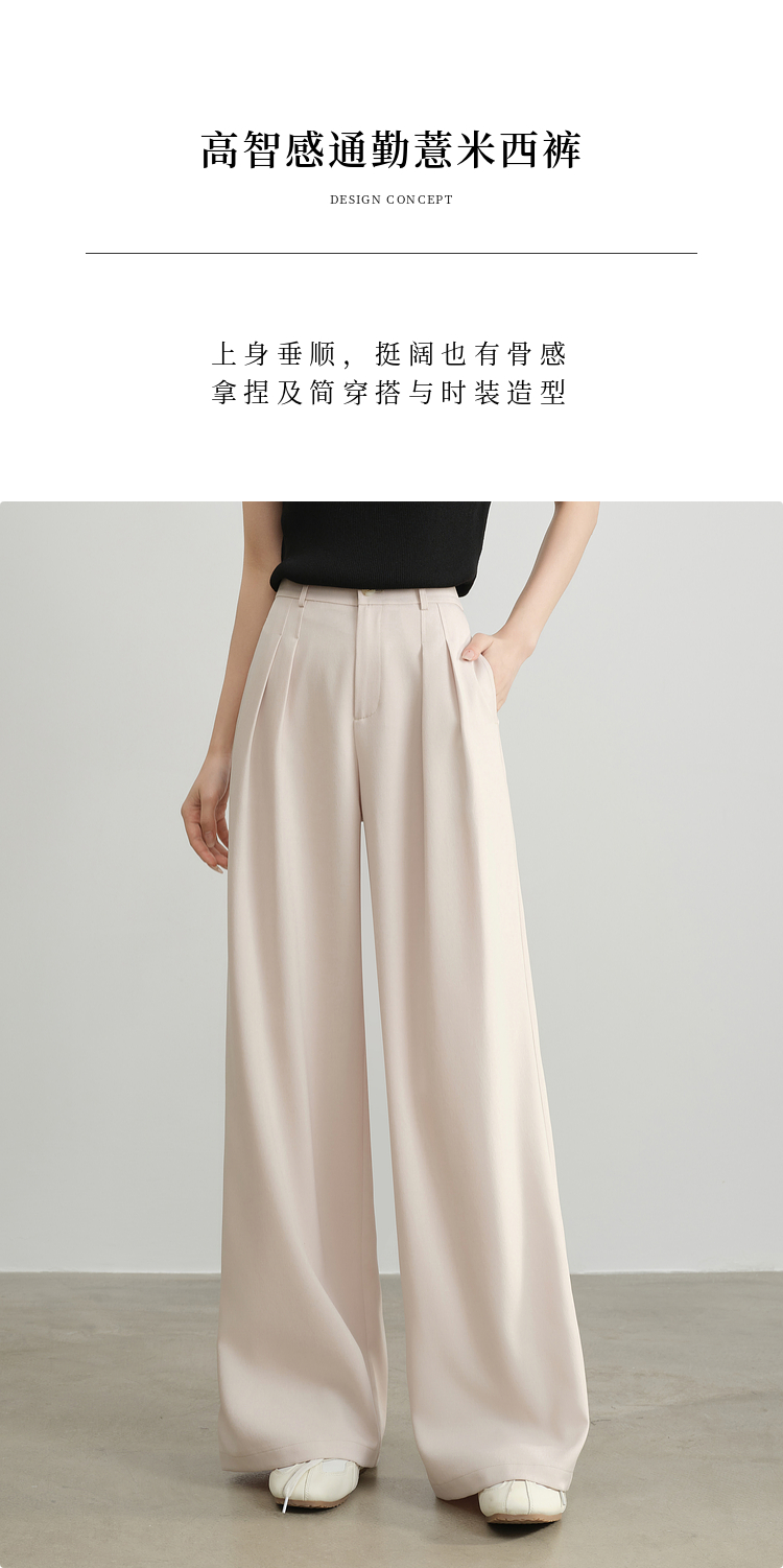 【五折购】熙世界宽松bf慵懒风通勤西装阔腿裤女夏薄款垂感窄版休闲直筒长裤