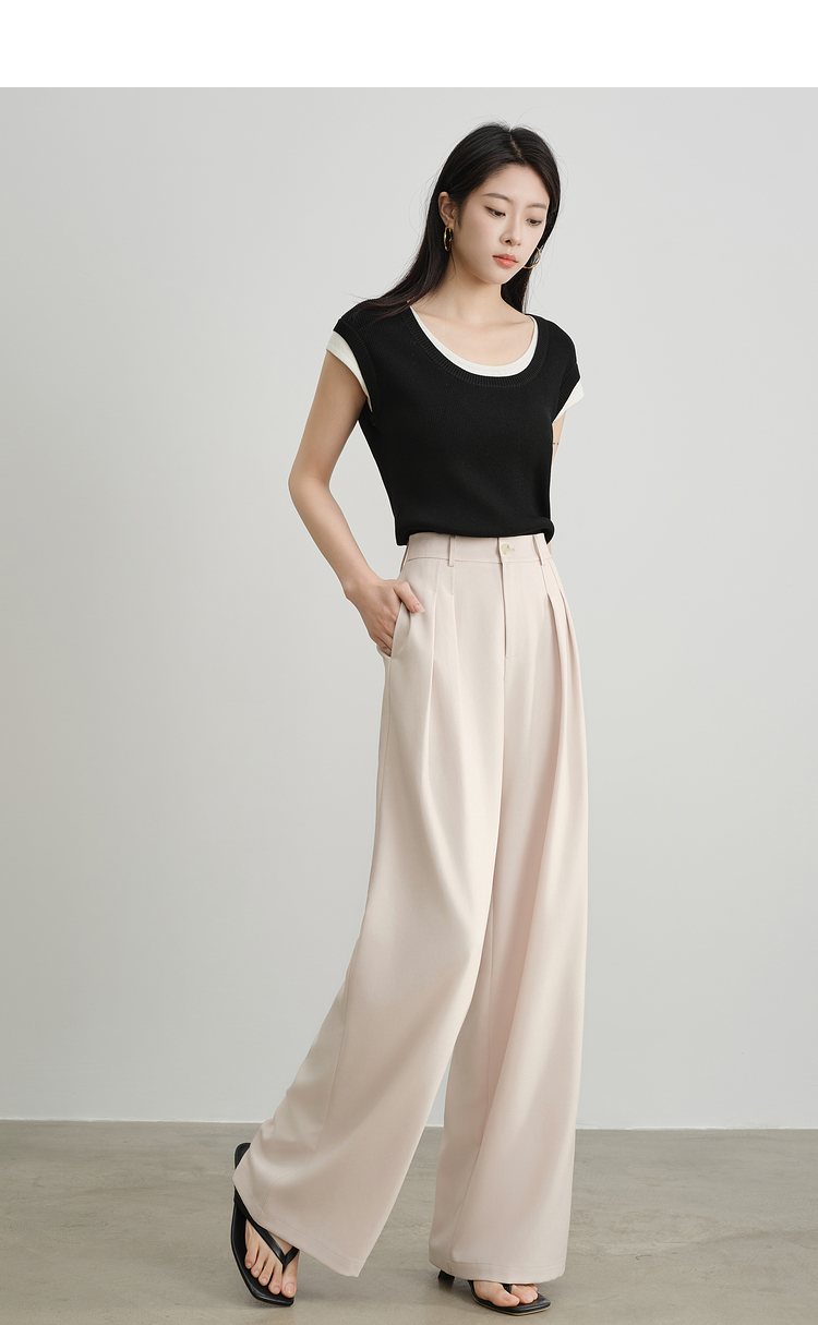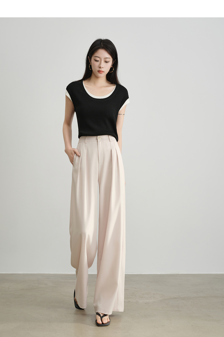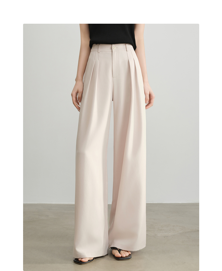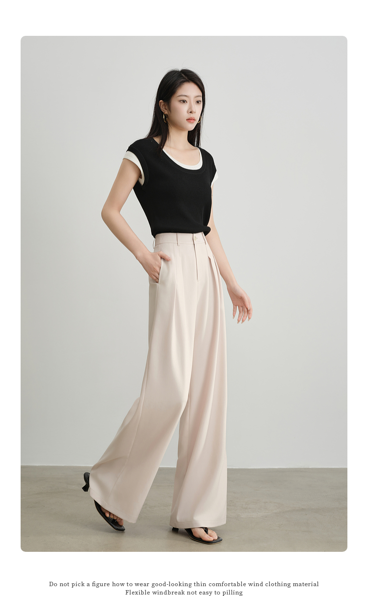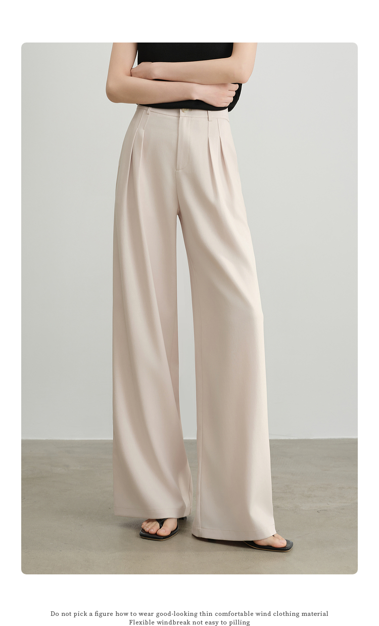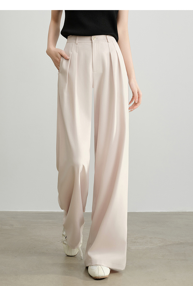 【五折购】熙世界宽松bf慵懒风通勤西装阔腿裤女夏薄款垂感窄版休闲直筒长裤