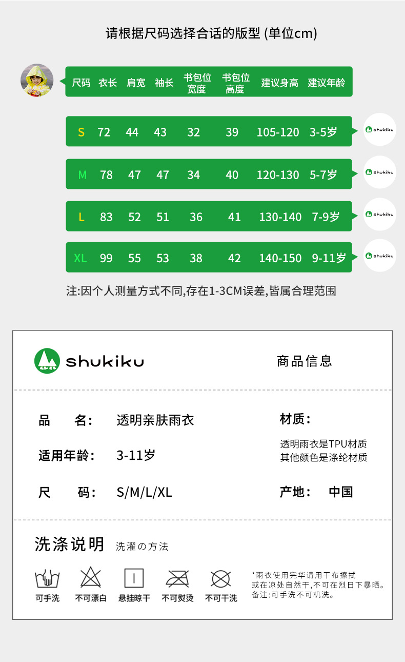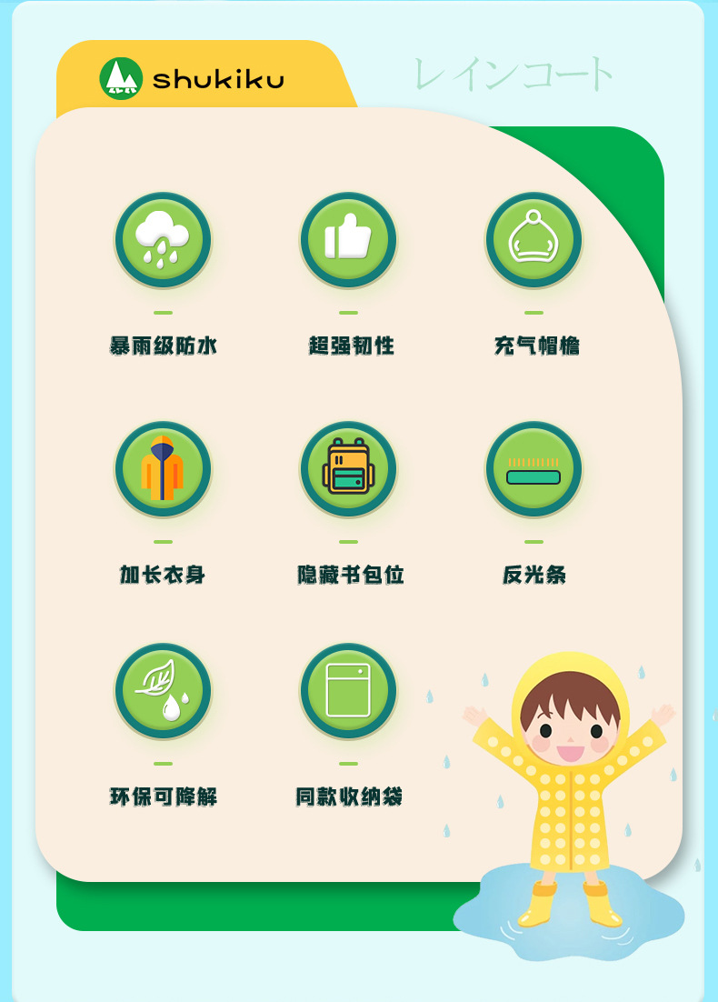 【品名】shukiku儿童雨靴、雨伞、雨衣