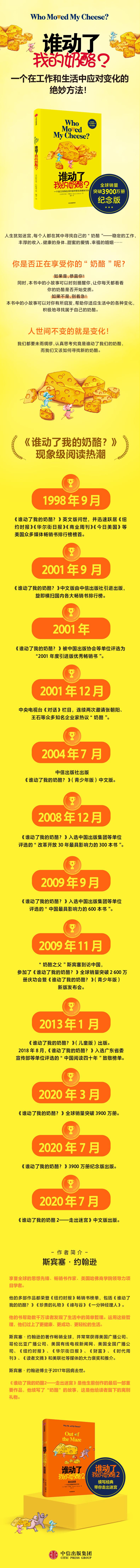 *《谁动了我的奶酪?》全新修订纪念版,被翻译成47种语言,全球畅销3900万册。