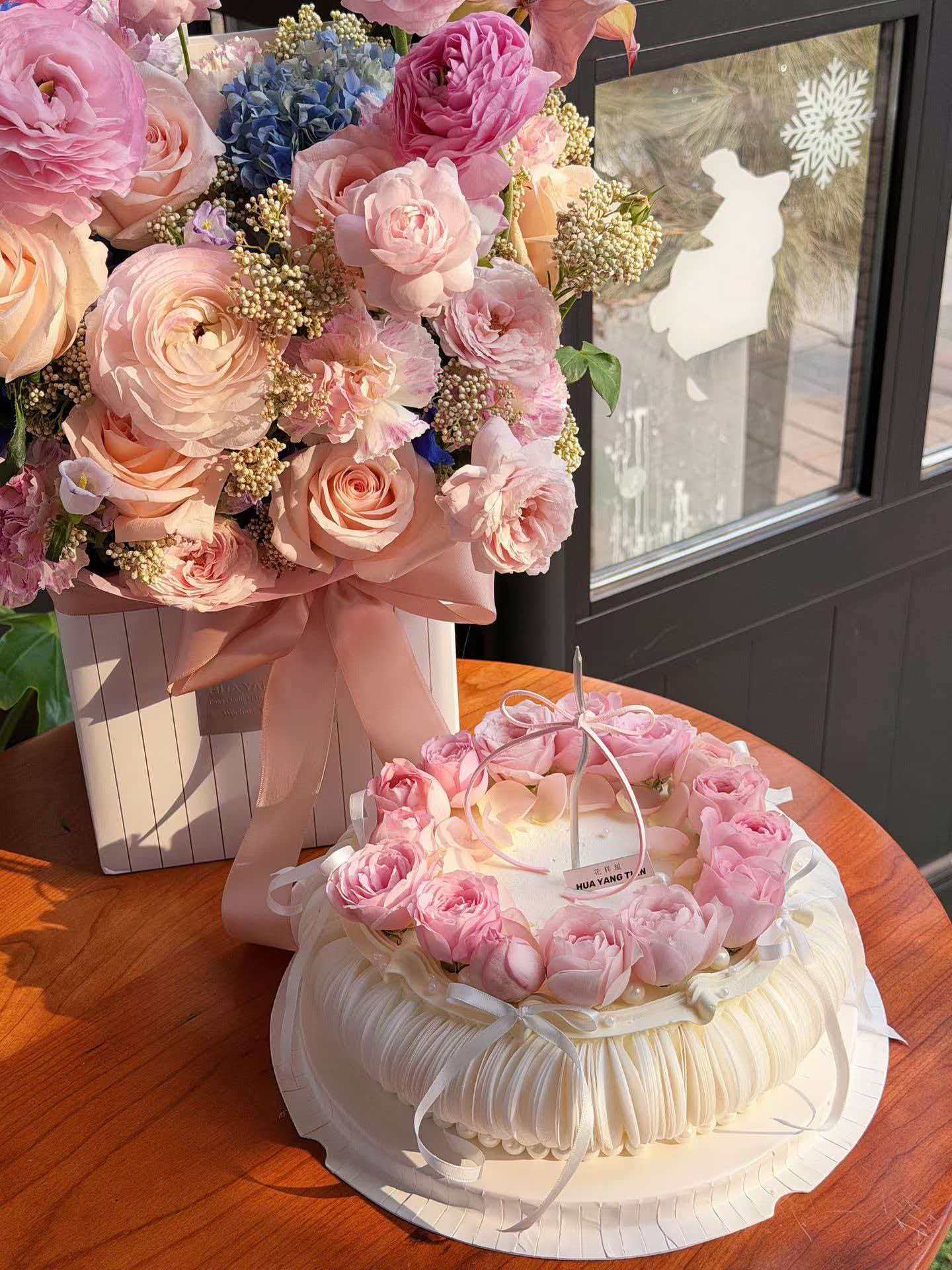 粉玫瑰簇拥成圆