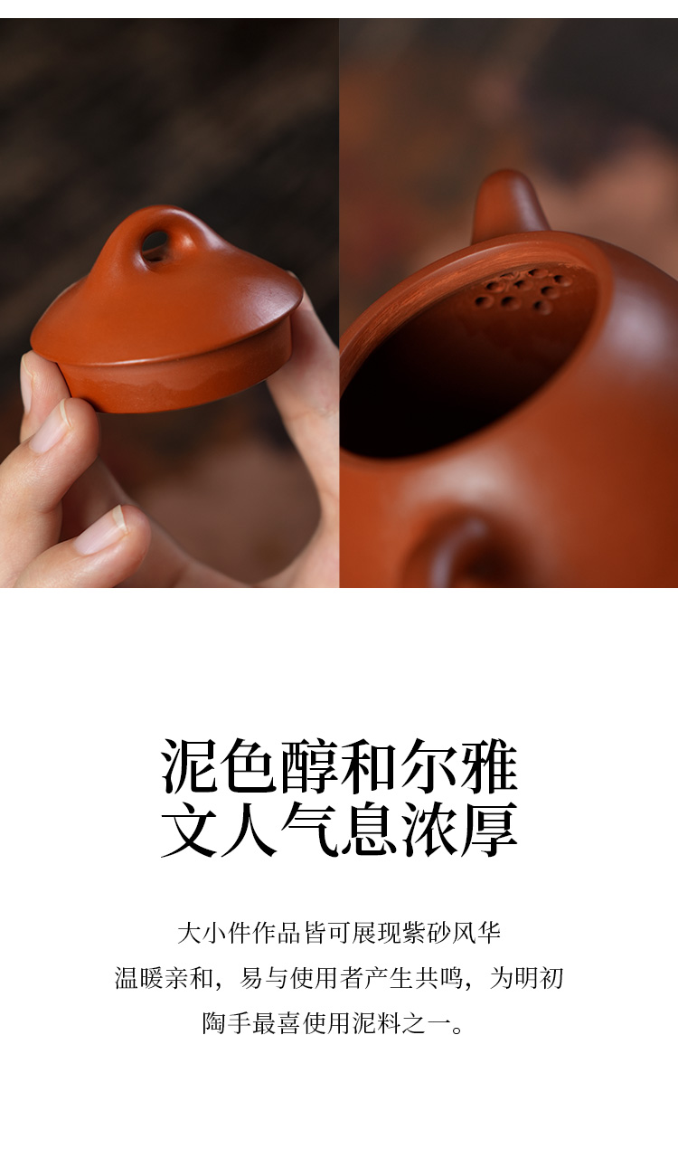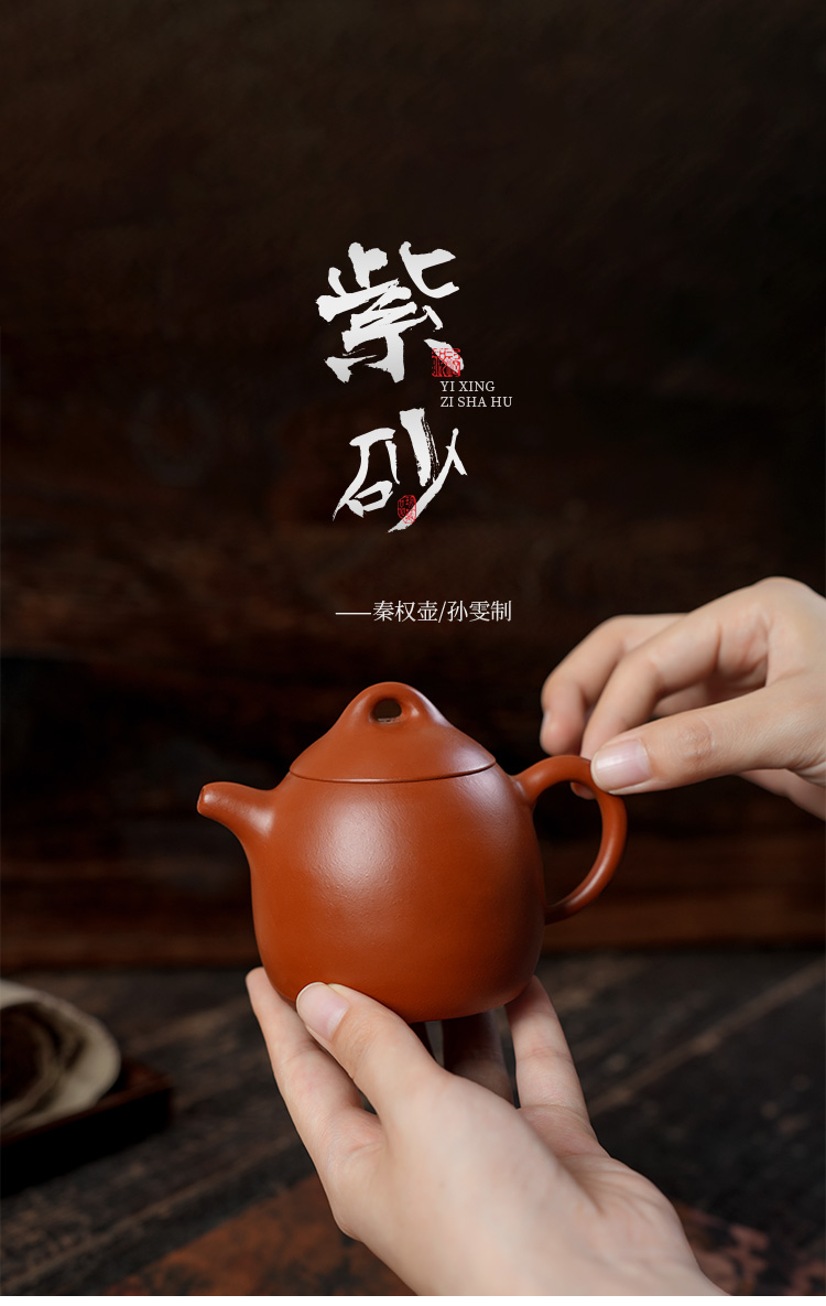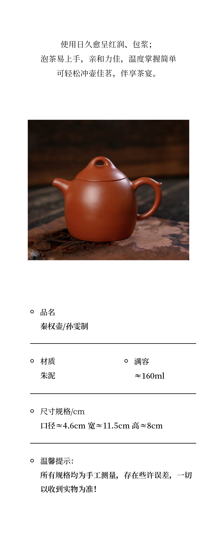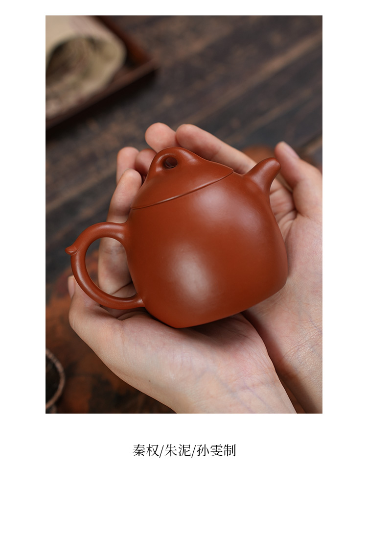 秦权壶 孙雯 宜兴原矿茶壶紫砂壶功夫茶泡茶壶朱泥紫砂茶具仿古