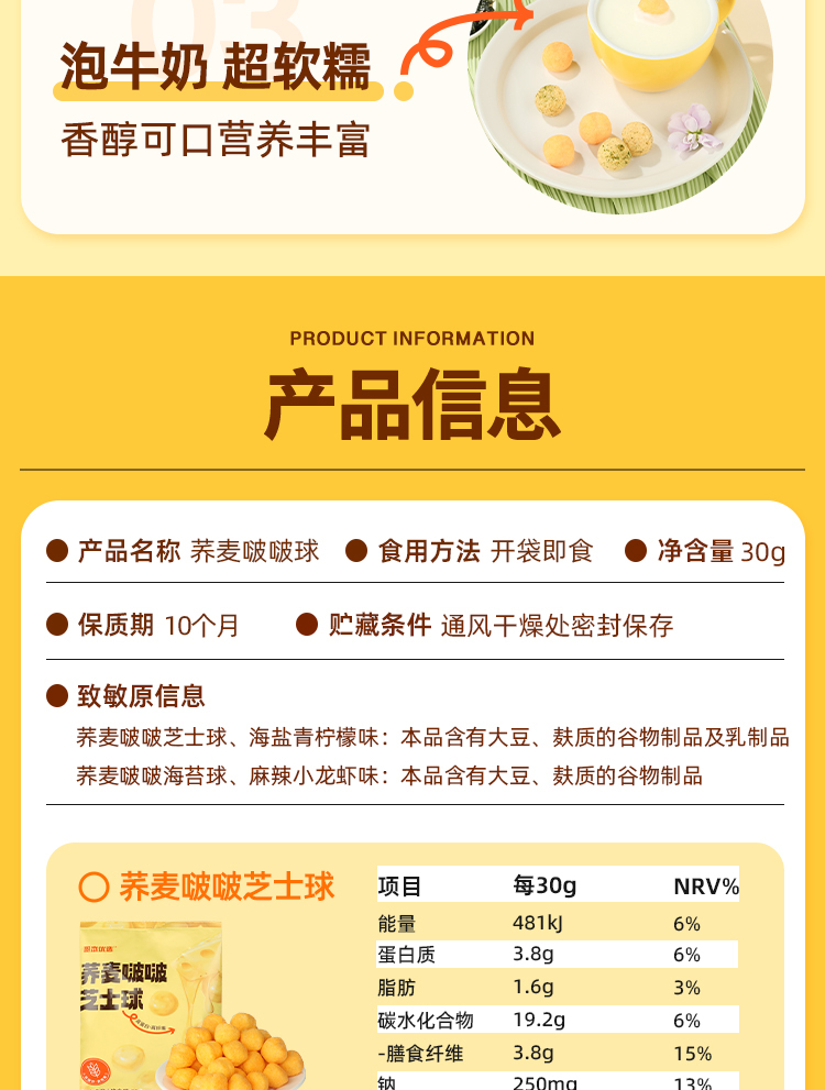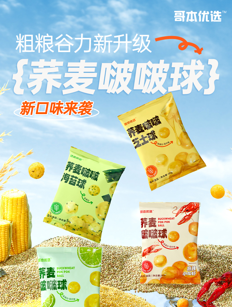 【断糖零食】哥本优选荞麦啵啵球 高蛋白 高膳食纤维 汇聚5种优质粗粮营养 好身材吃出来 轻食私域专属