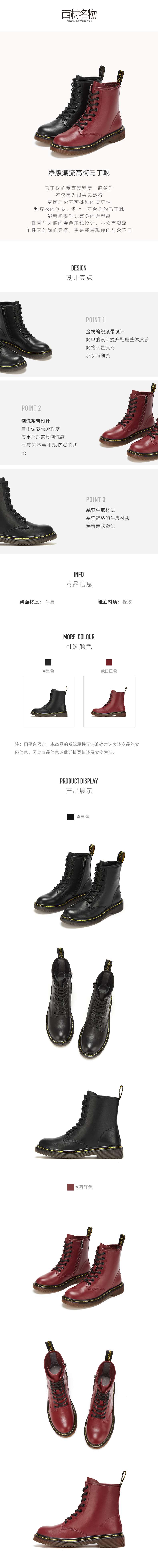 西村名物2020冬季新款净版潮流高街马丁靴牛皮金线系带女靴X20DS44938