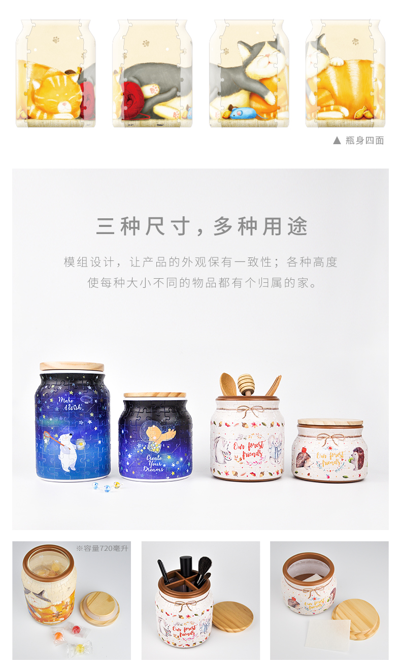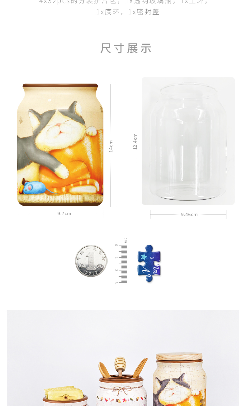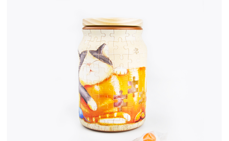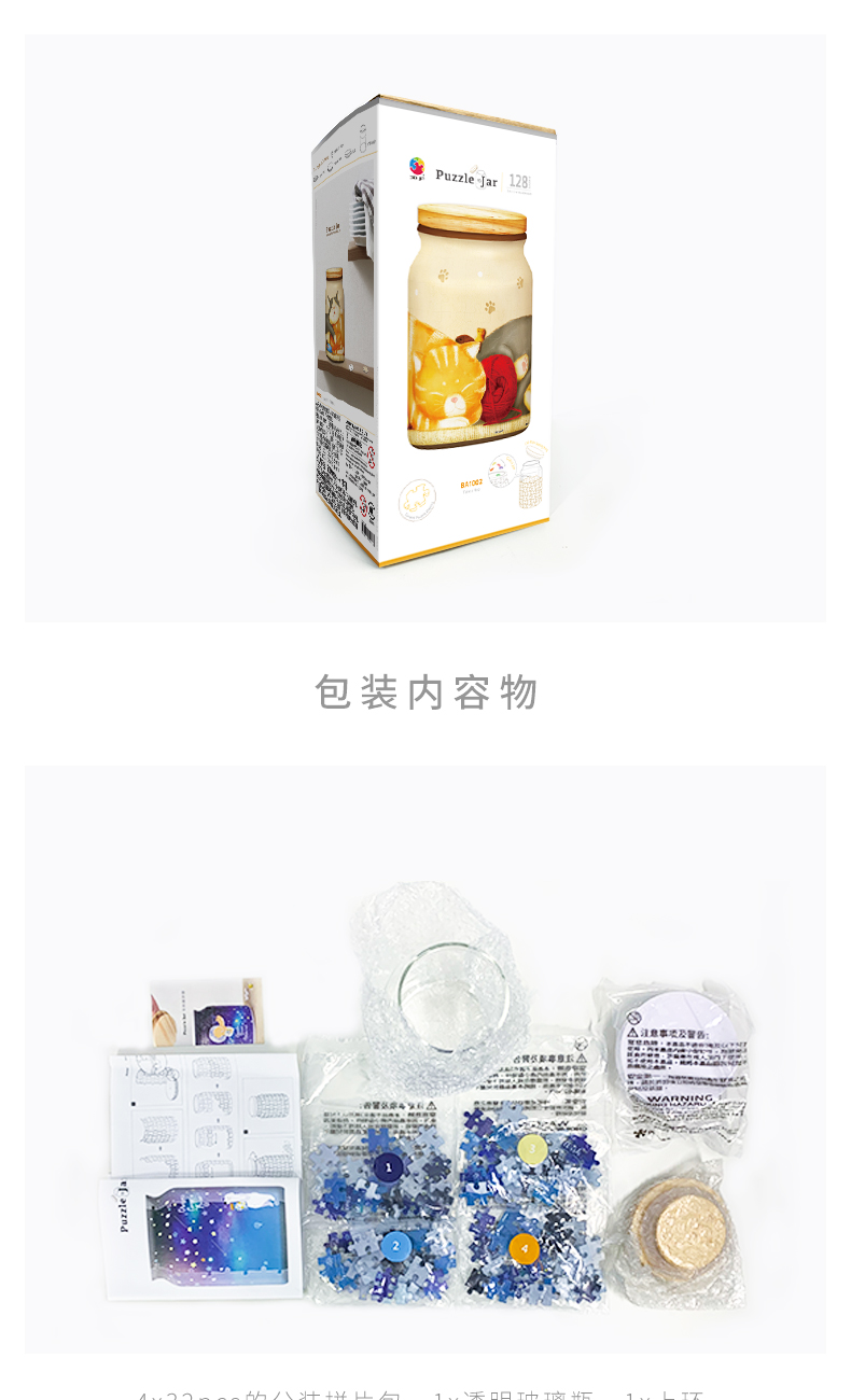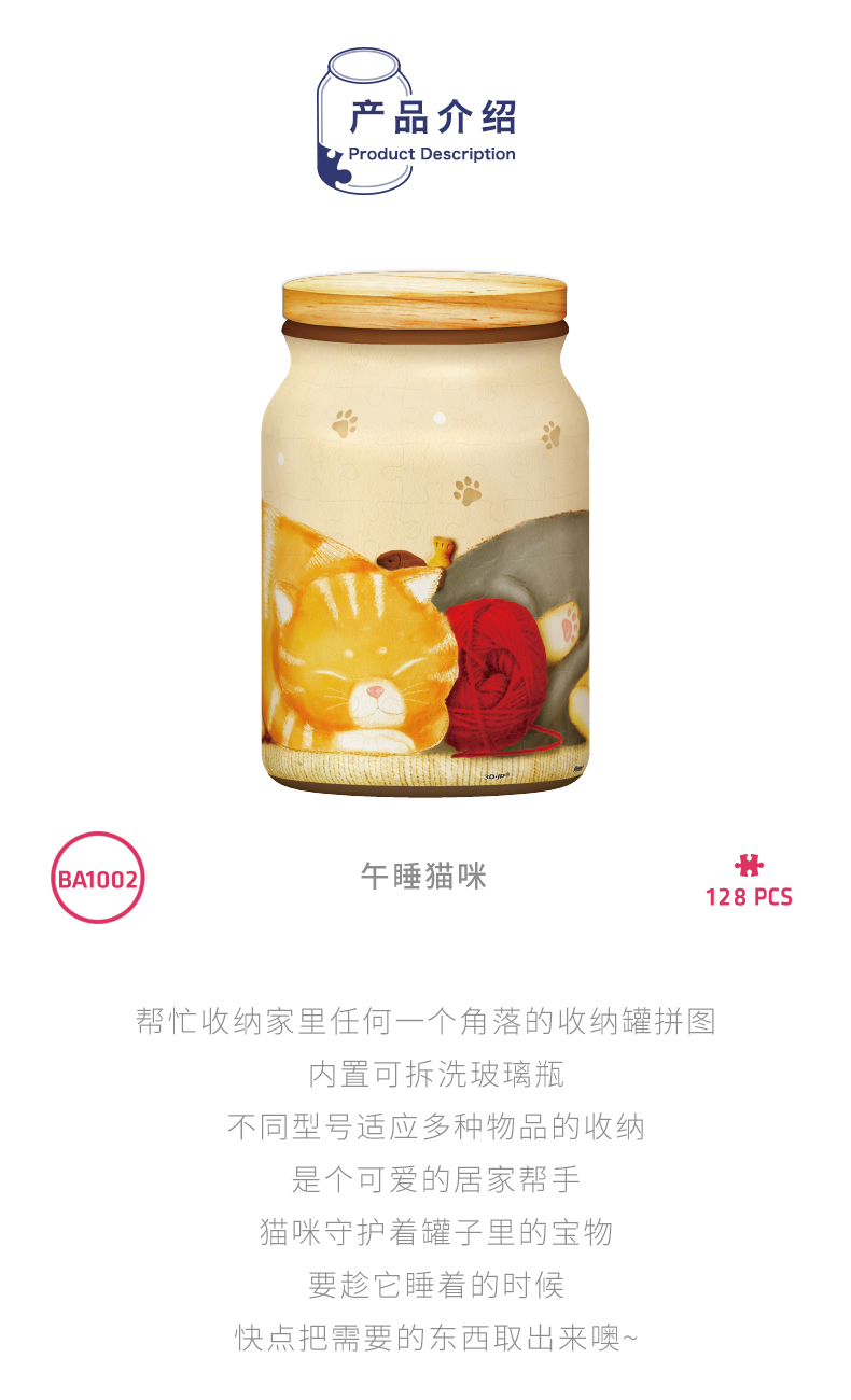 128片 收纳罐拼图 塑料拼图 BA1002 午睡猫咪