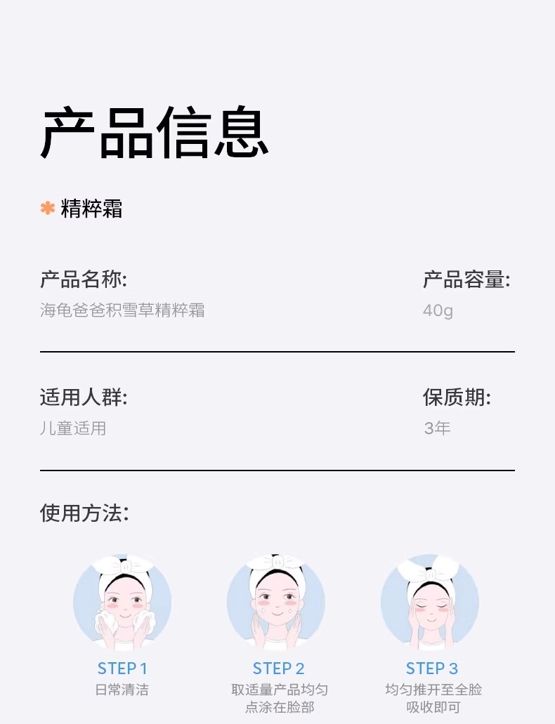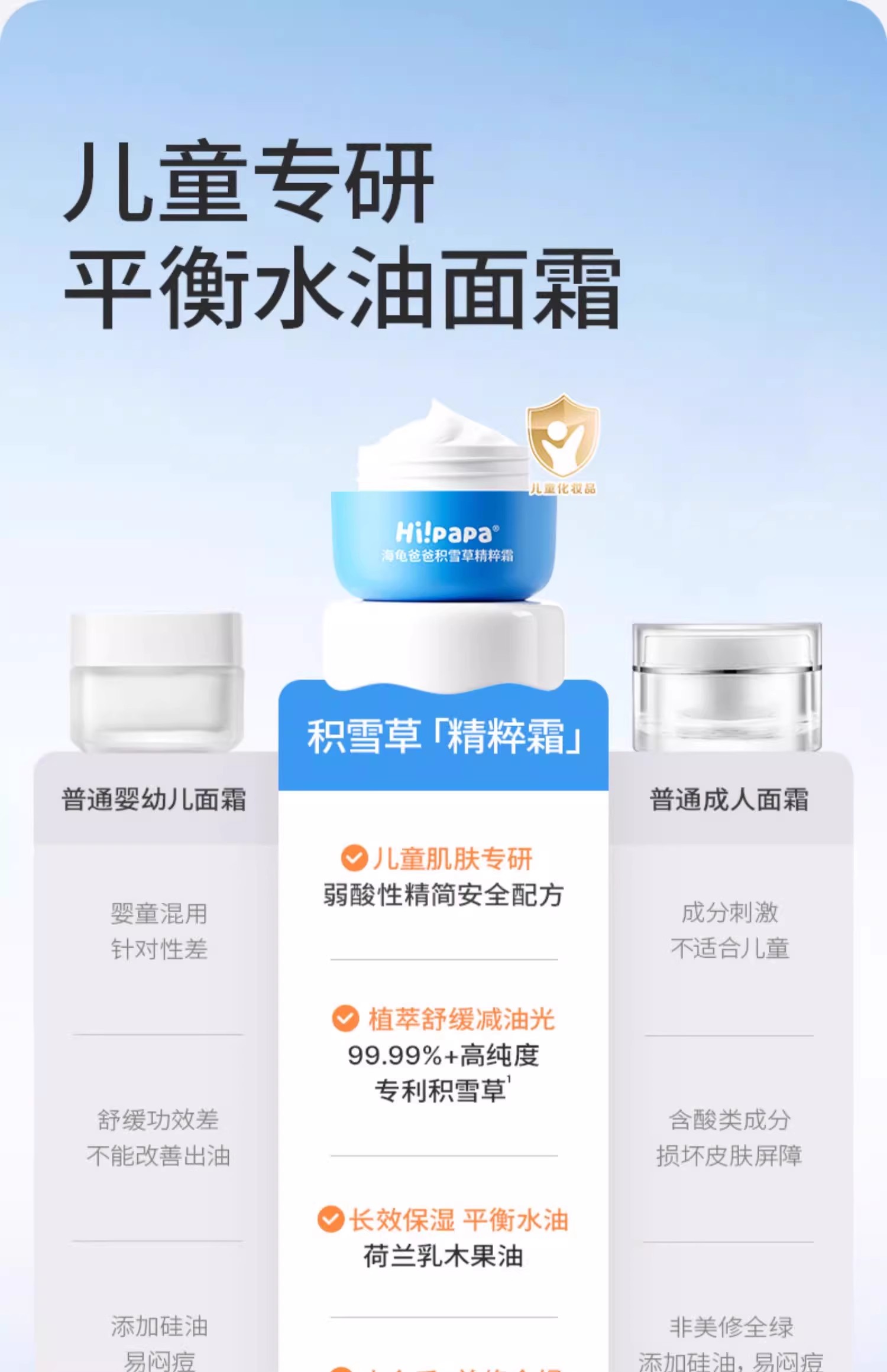 海龟爸爸积雪草儿童面霜秋冬季宝宝滋润保湿婴儿润肤乳修护精粹霜