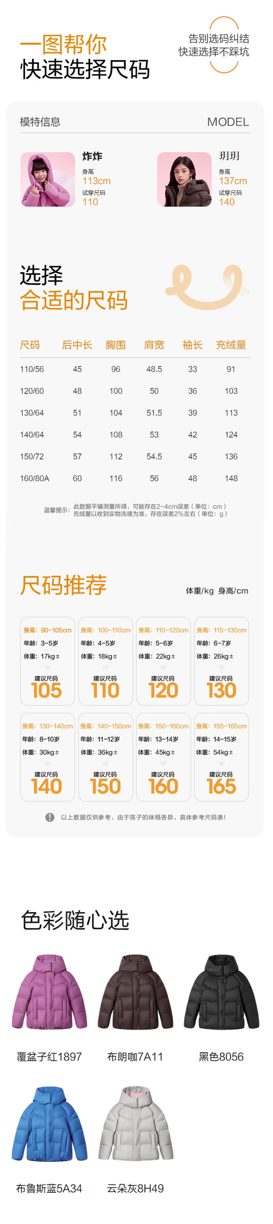 波司登2025冬新款儿童泡芙亲子女童厚羽绒服T250243102Q