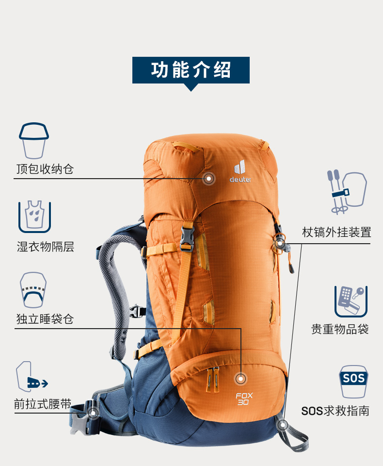 德国多特deuter进口狐狸FOX儿童户外徒步登山包轻量透气双肩背包