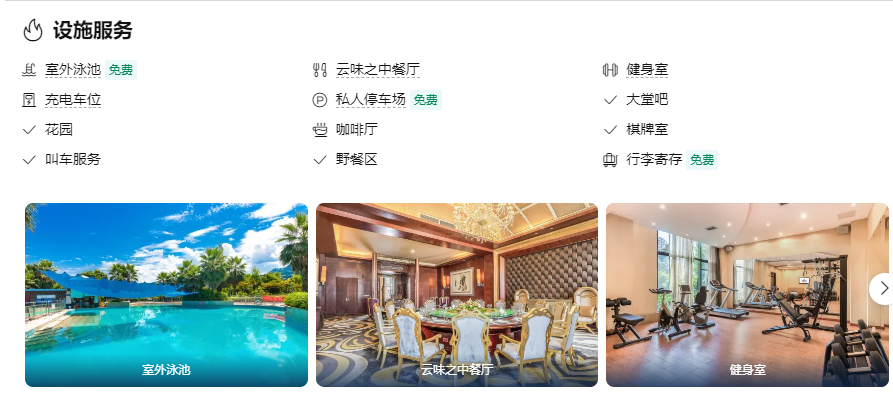 酒店会议中心有大小会议室四个,配有LED、投影仪、扩音器等先进的视听系统,具有主题特色的会议设计,专业的服务人员能为10人至300人的政务、商务会议提供贴心服务。酒店还设有室外泳池、商务中心、精品廊、娱乐中心、棋牌室等服务娱乐设施,配套项目齐全。