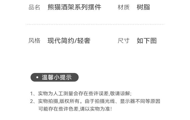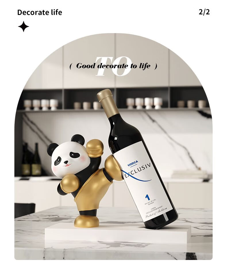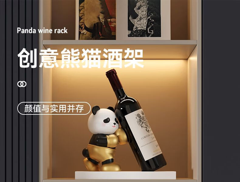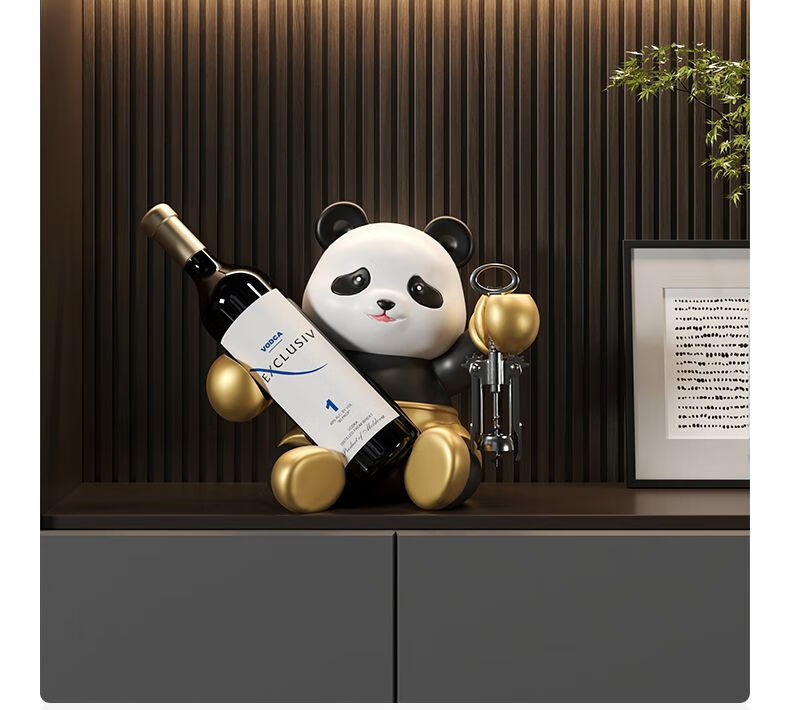 熊猫红酒架装饰品摆件轻奢玄关客厅酒柜餐厅桌面创意乔迁新居礼品 熊猫酒架