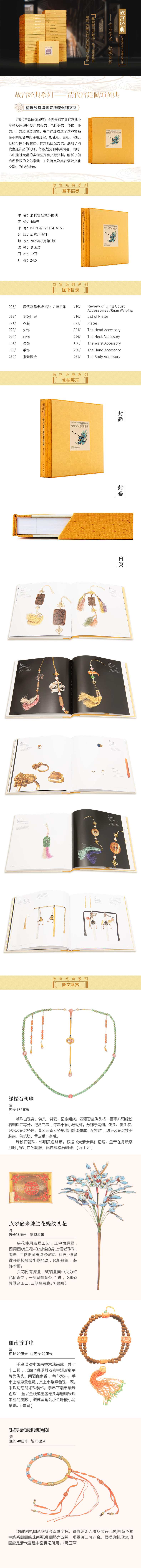 【故宫经典】清代宫廷佩饰图典 全面介绍了清代宫廷中皇帝及后妃所使用的佩饰,包括头饰、项饰、腰饰、手饰及服装佩饰。