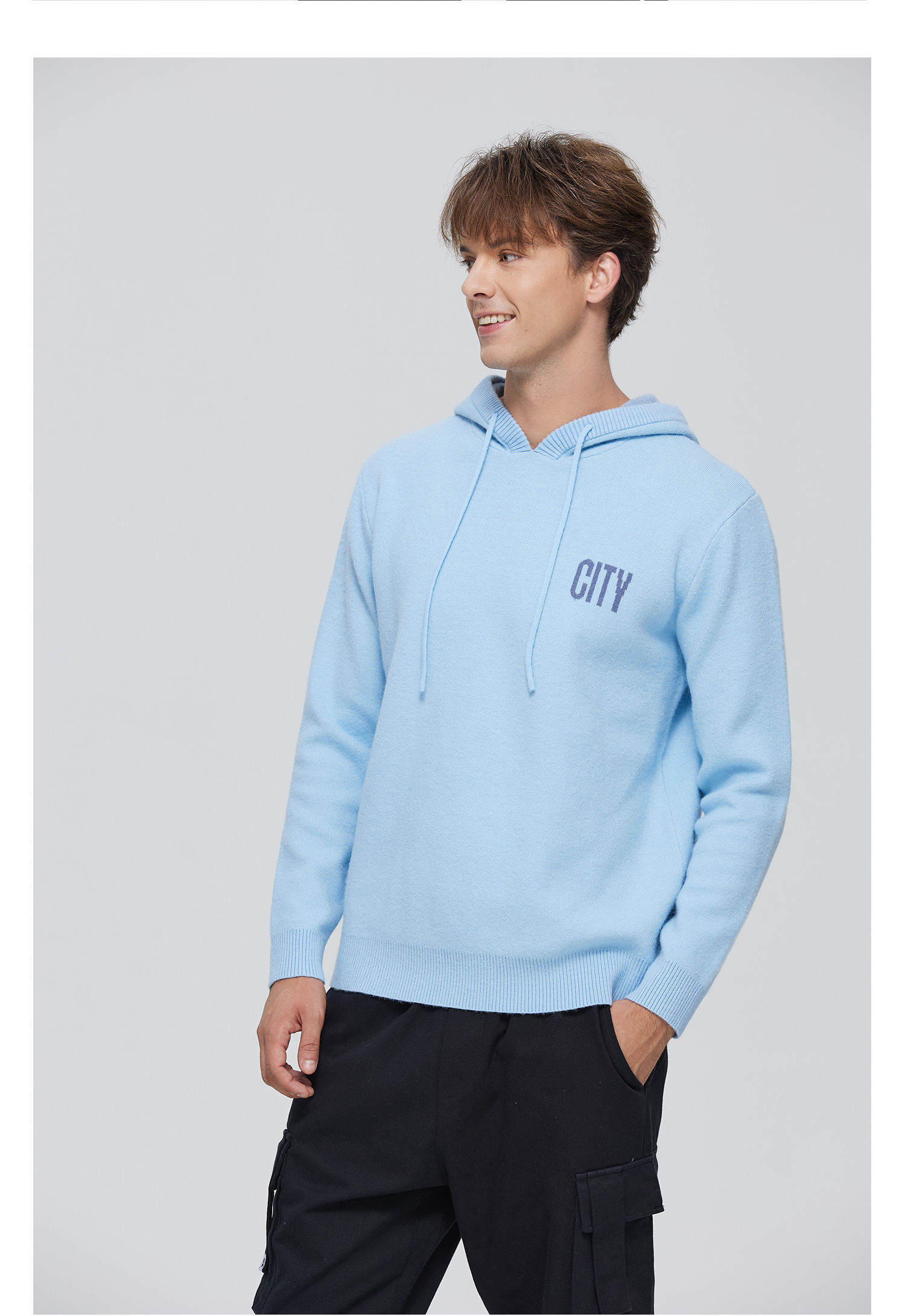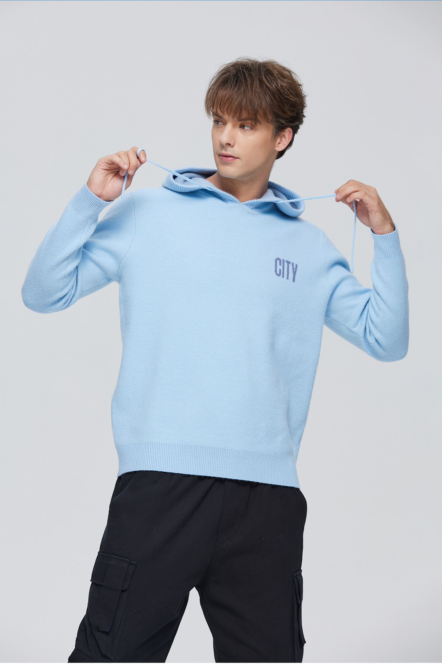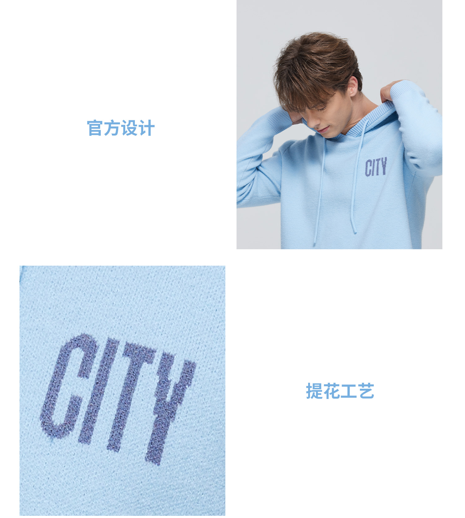 【官方正版】曼城俱乐部 | 保暖浅蓝提花连帽毛衣球迷