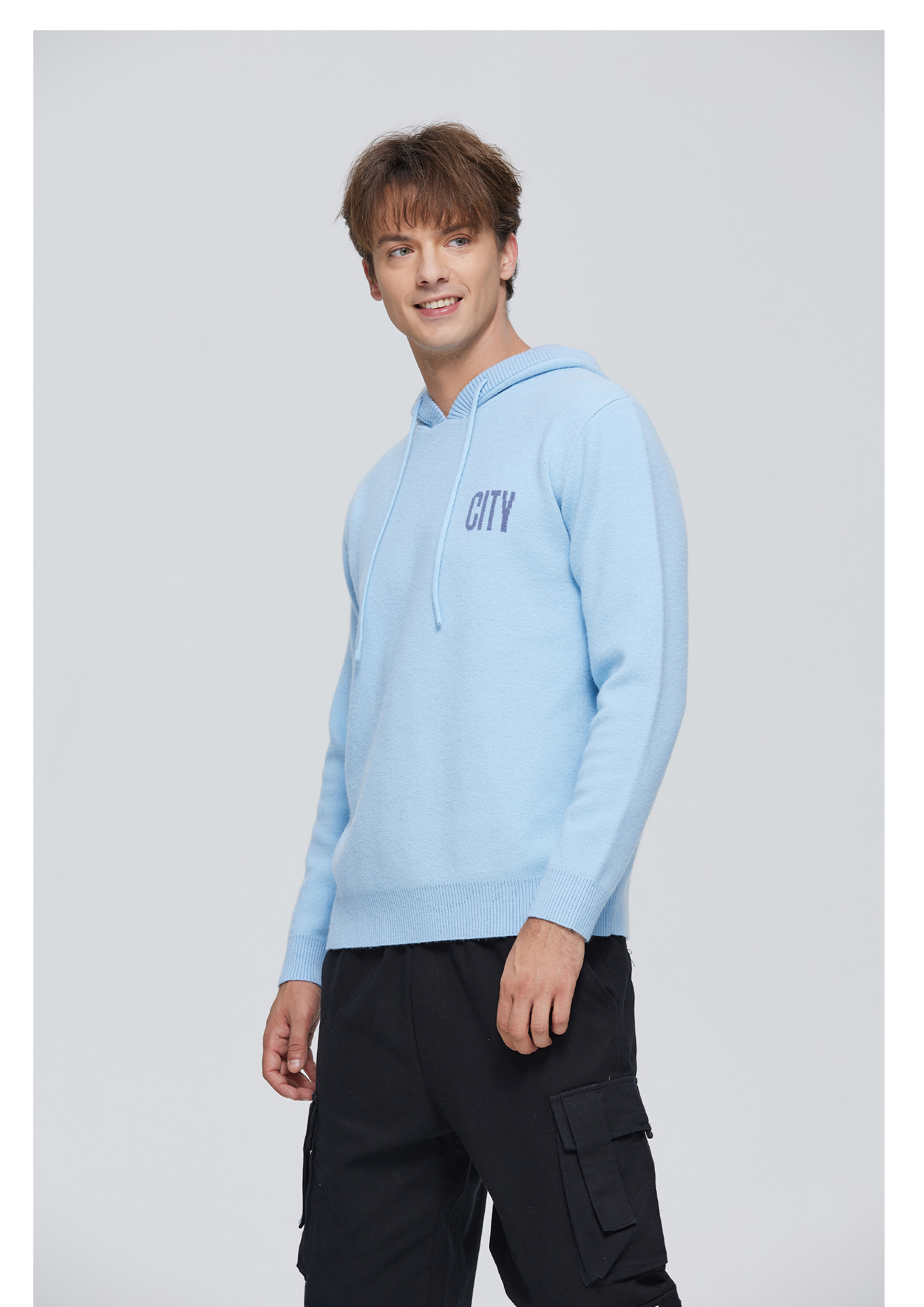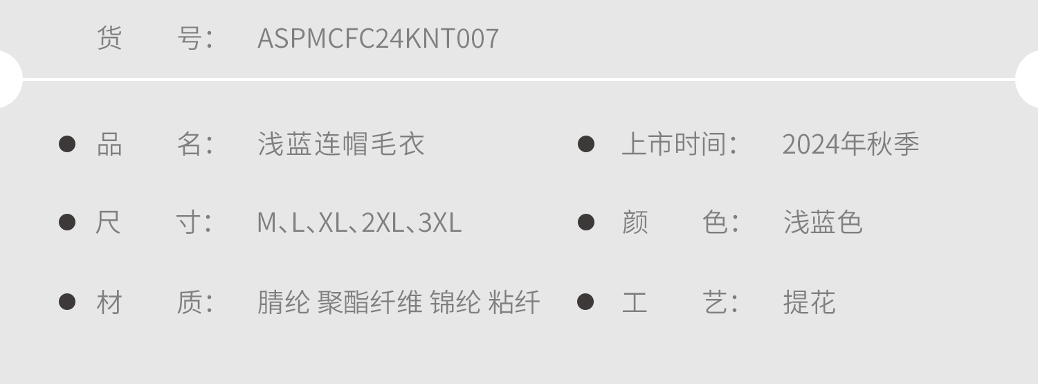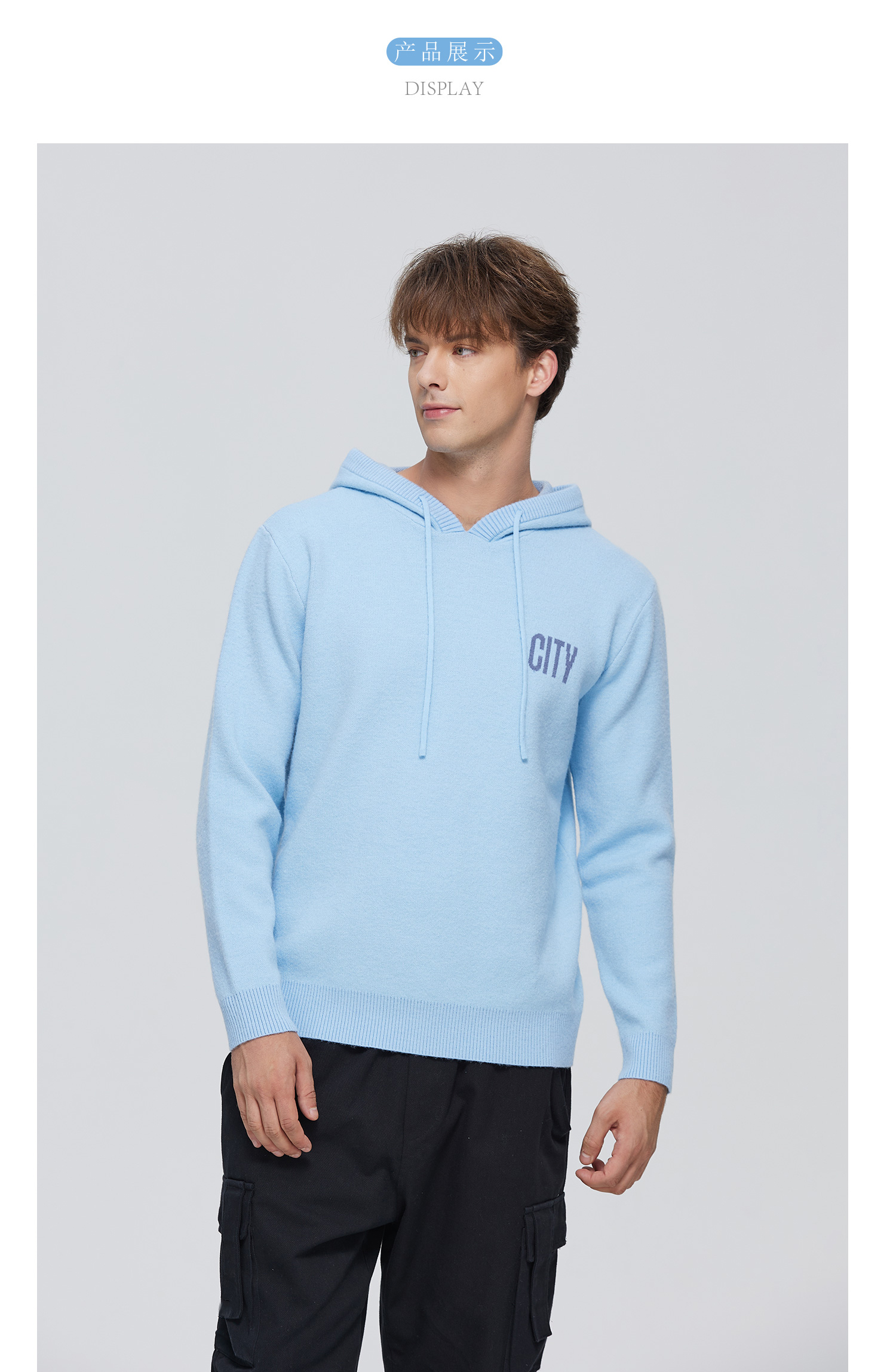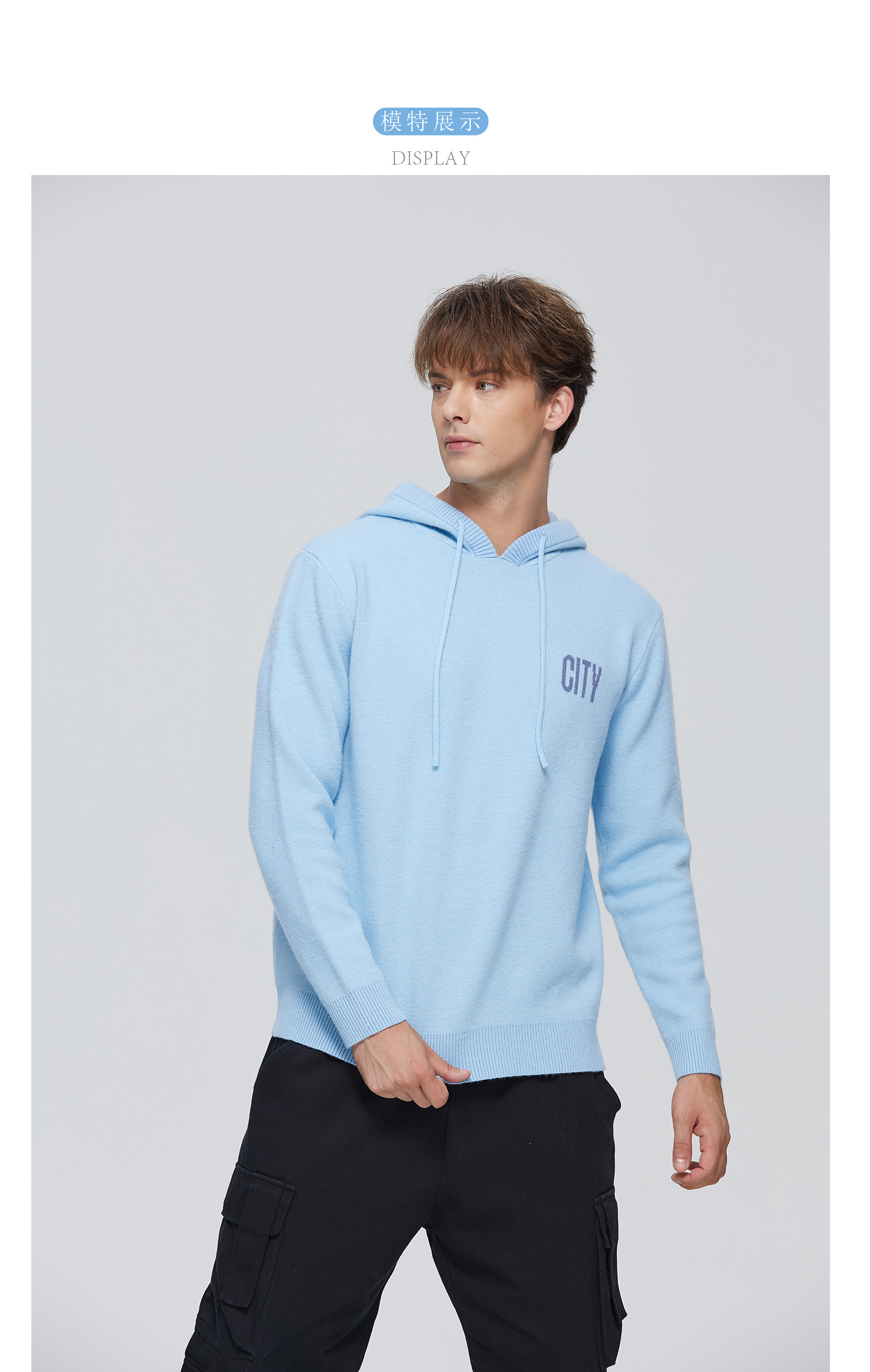 【官方正版】曼城俱乐部 | 保暖浅蓝提花连帽毛衣球迷
