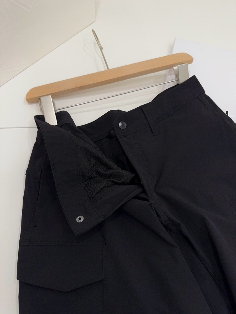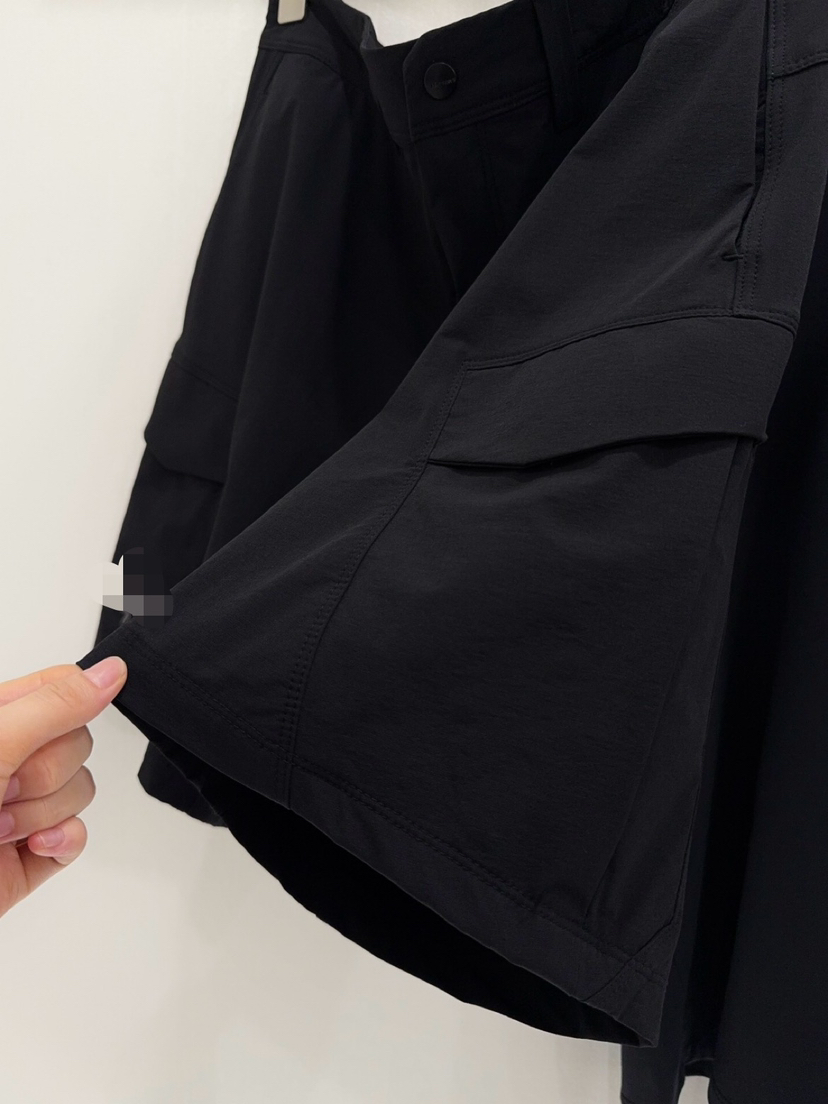 微阔立体剪裁,裤长适中,刚好落在膝盖上方,不短不拖沓