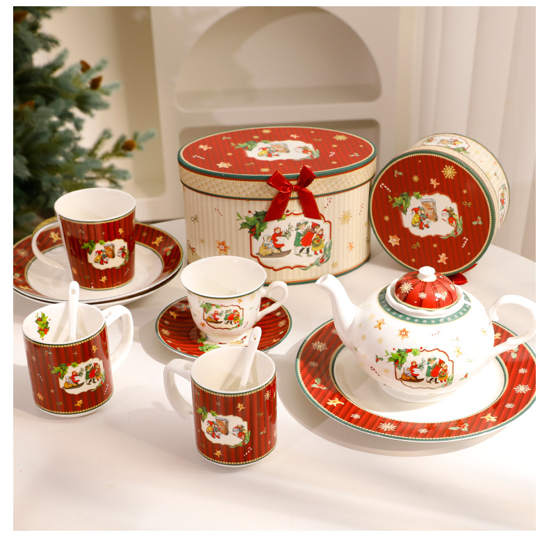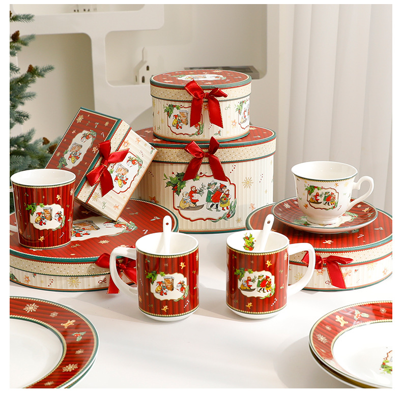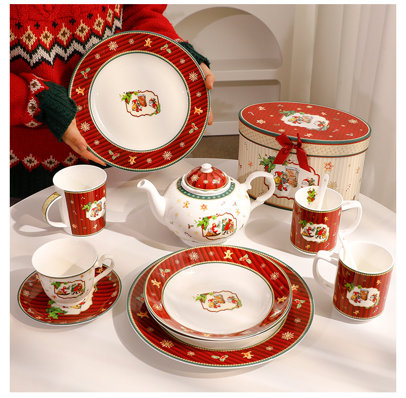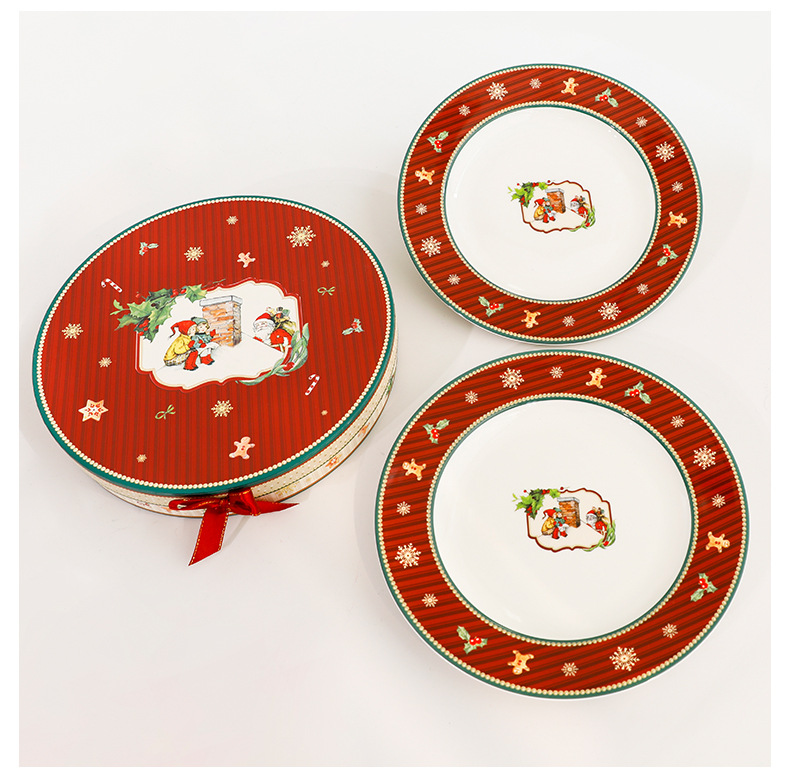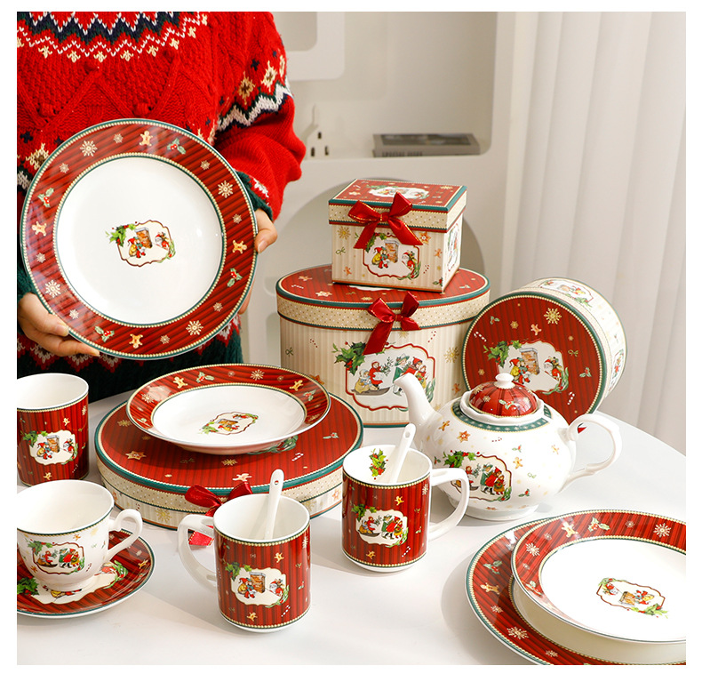 跨境热卖圣诞节高档简约轻奢圣诞陶瓷餐具碗盘蝶套装礼批发