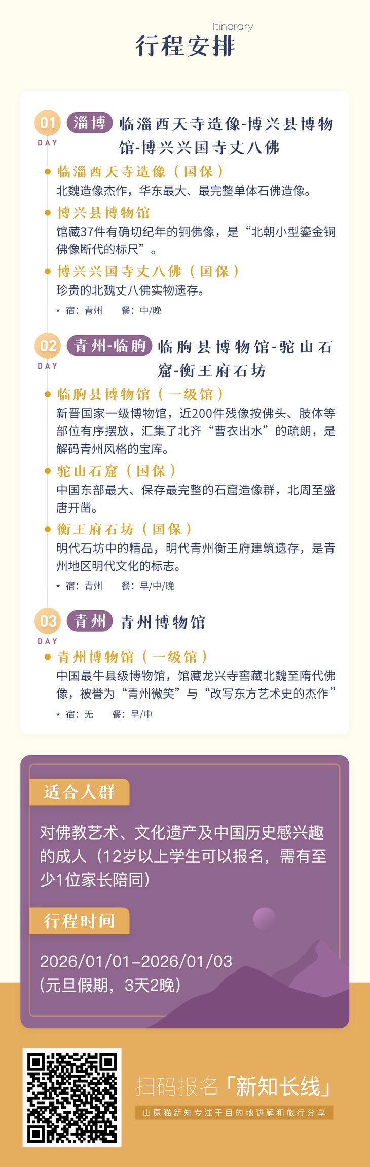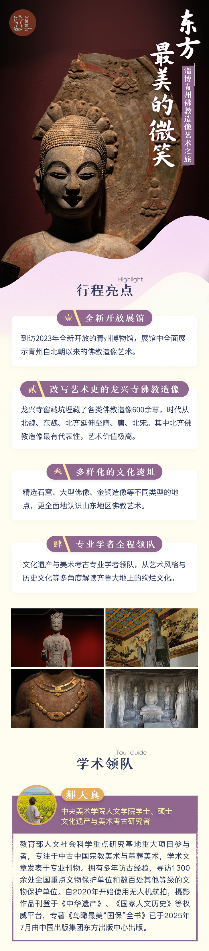 【东方最美微笑·淄博青州佛教造像艺术之旅】,团友们跟随郝天真老师来到淄博,到访博兴兴国寺丈八佛和博兴县博物馆,听老师从艺术风格与历史文化等多角度深度解读齐鲁大地的绚烂文化;在驼山石窟和青州博物馆新馆,细赏美得像梦一样的青州龙兴寺造像,品味永恒的微笑️。