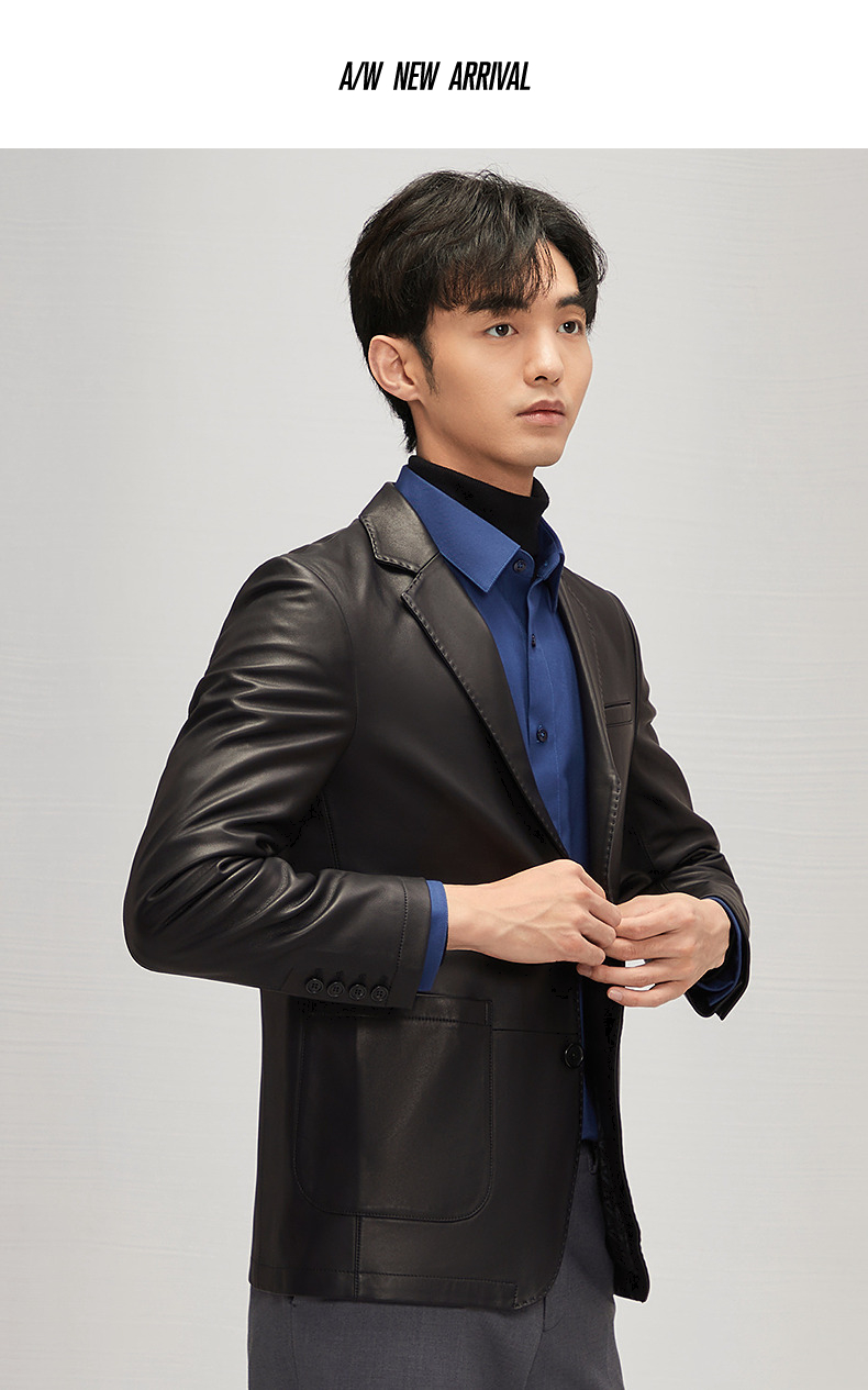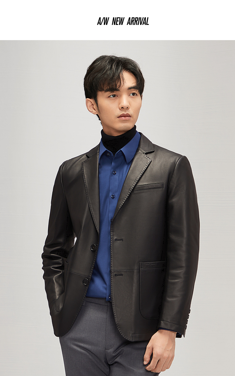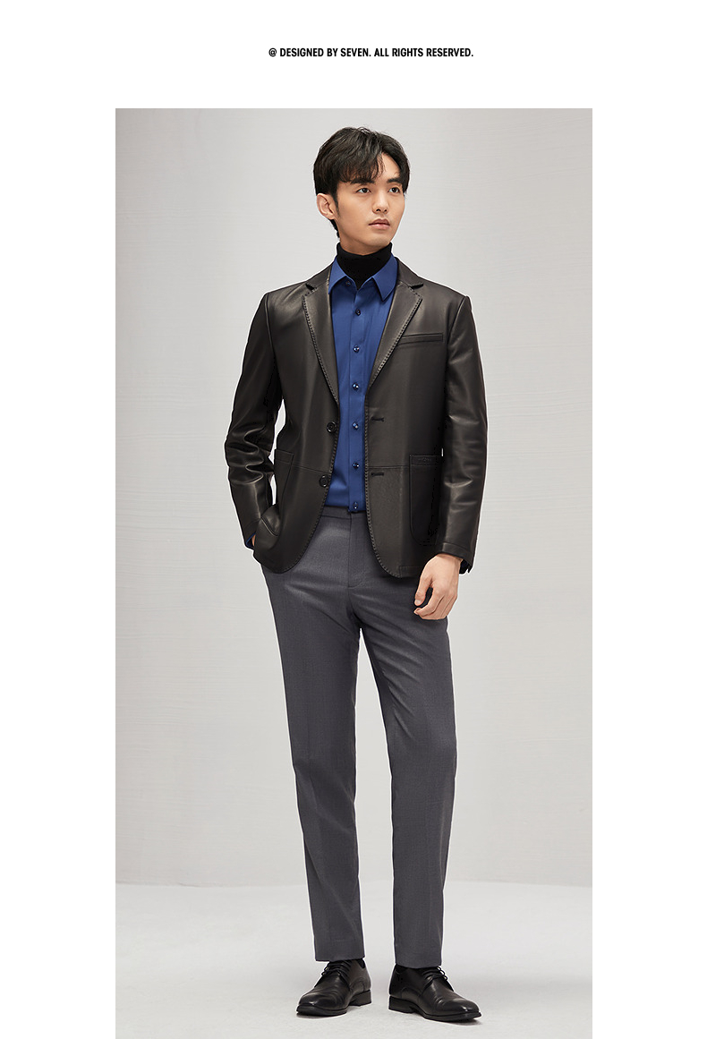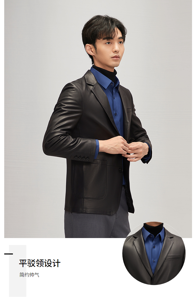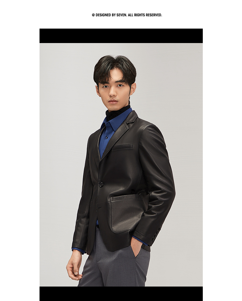 【绵羊皮】柒牌男士真皮皮衣2024秋冬新款商务休闲黑色西装领外套 127J70300