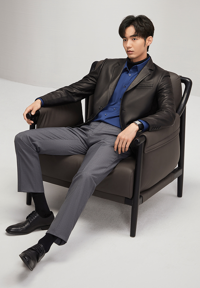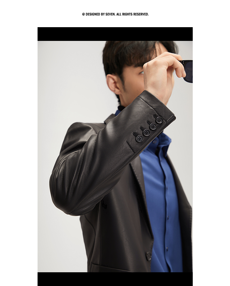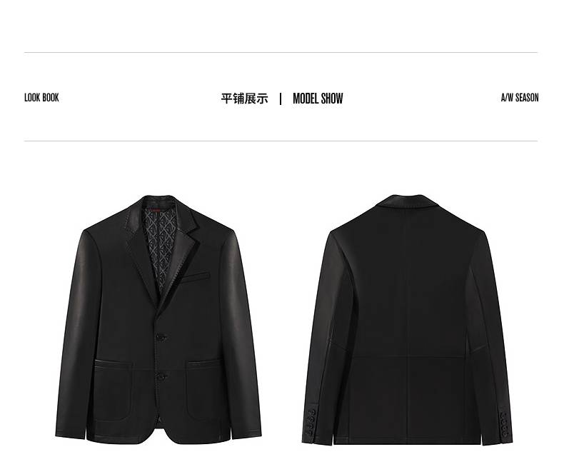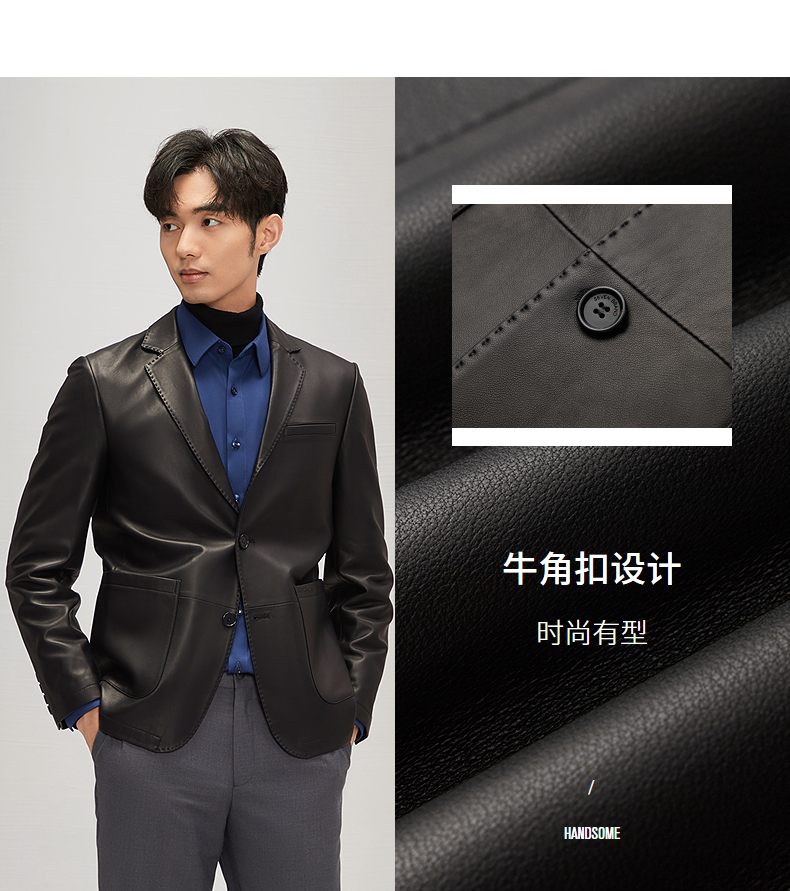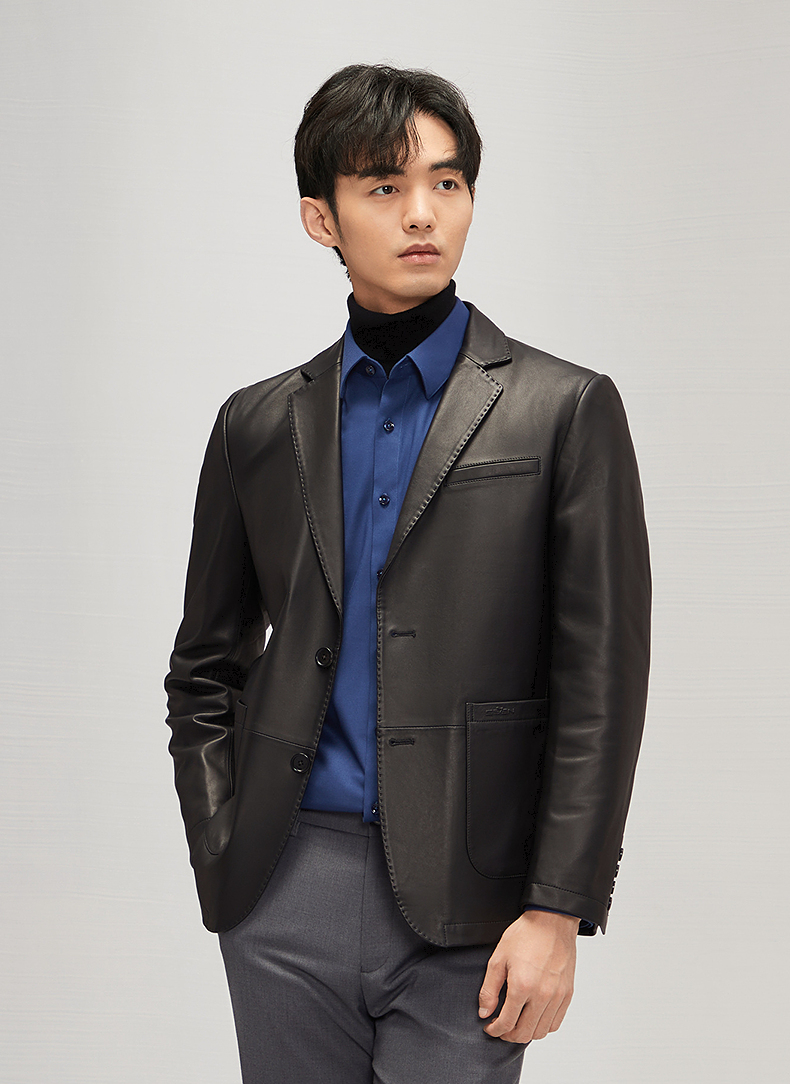 【绵羊皮】柒牌男士真皮皮衣2024秋冬新款商务休闲黑色西装领外套 127J70300