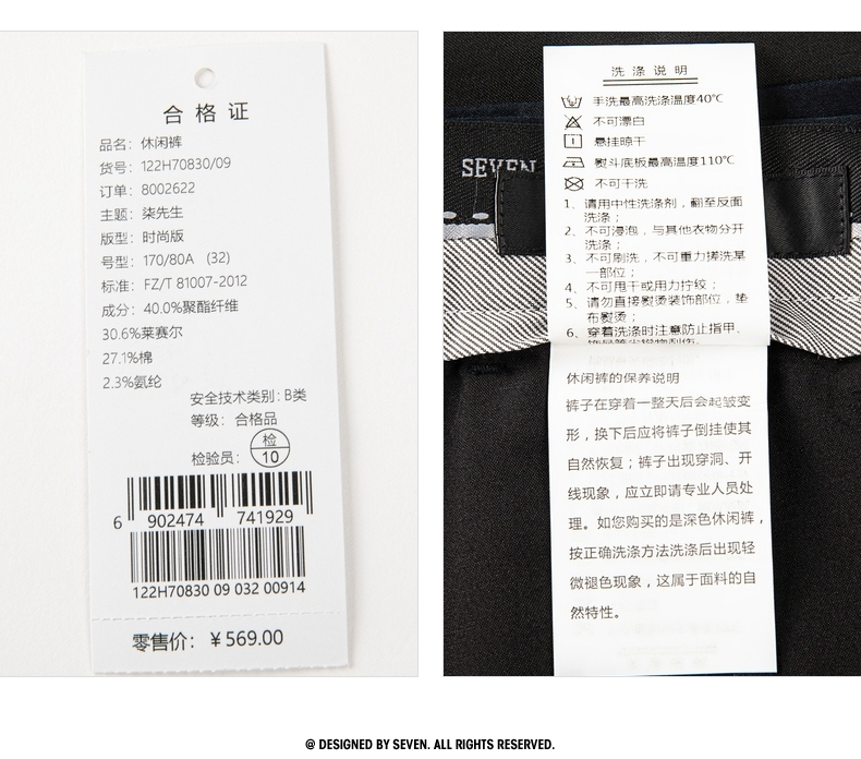 【特价】【莱赛尔】柒牌男装休闲裤春秋款商务休闲青年男裤多色直筒长裤子122H70831