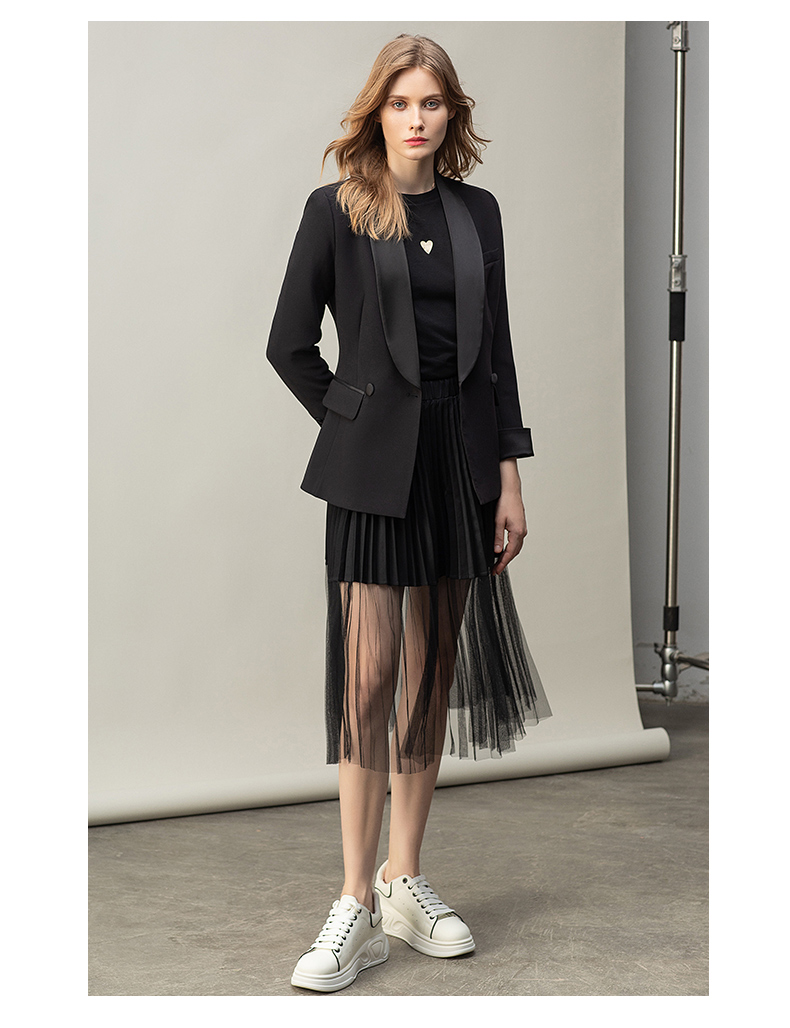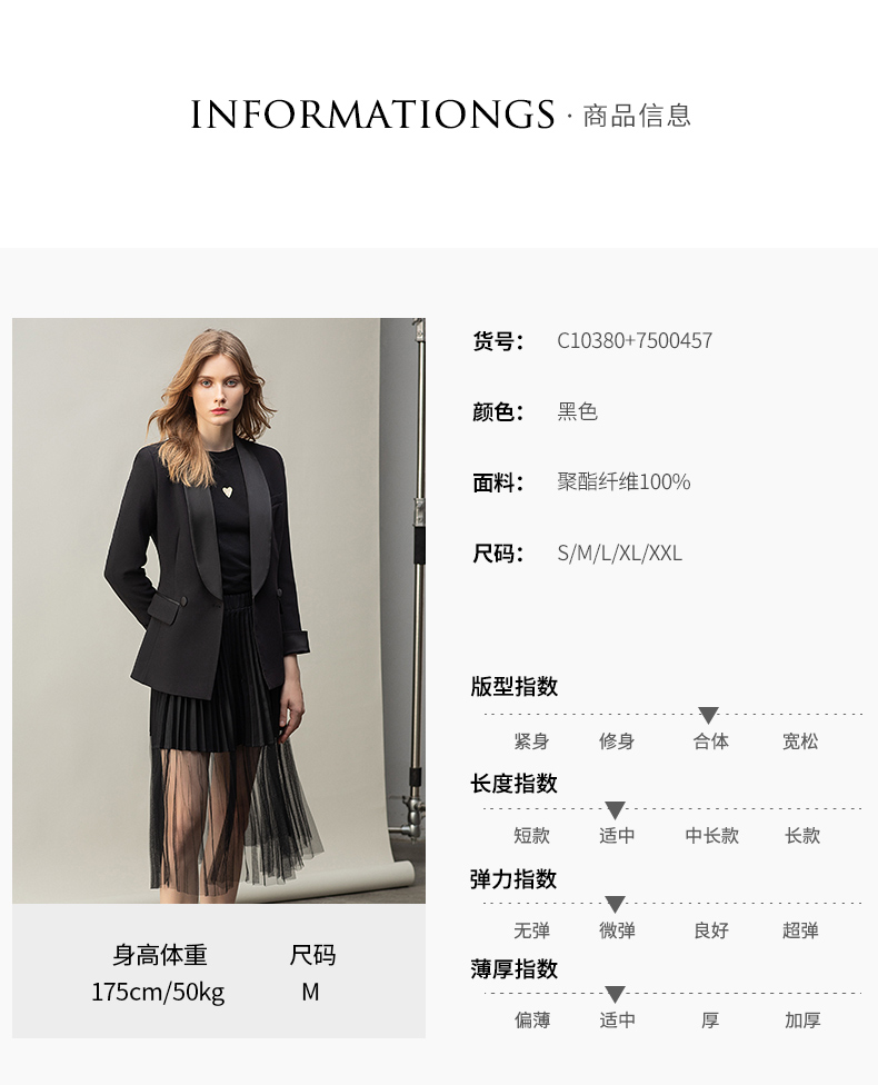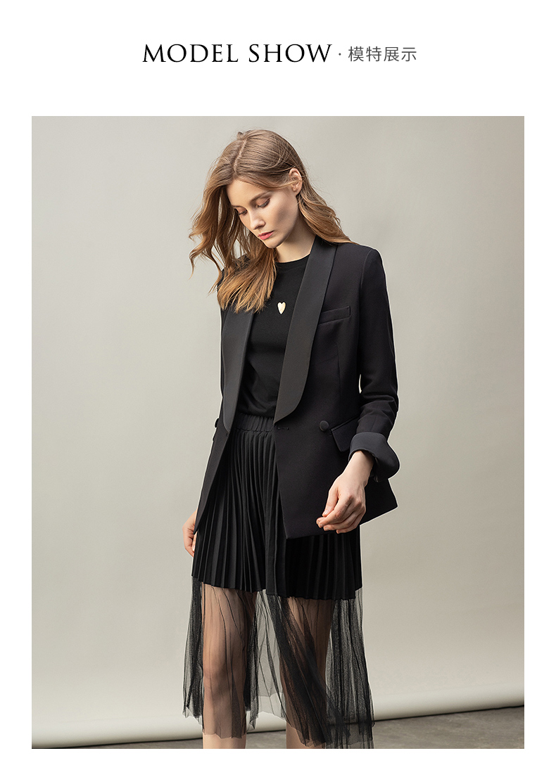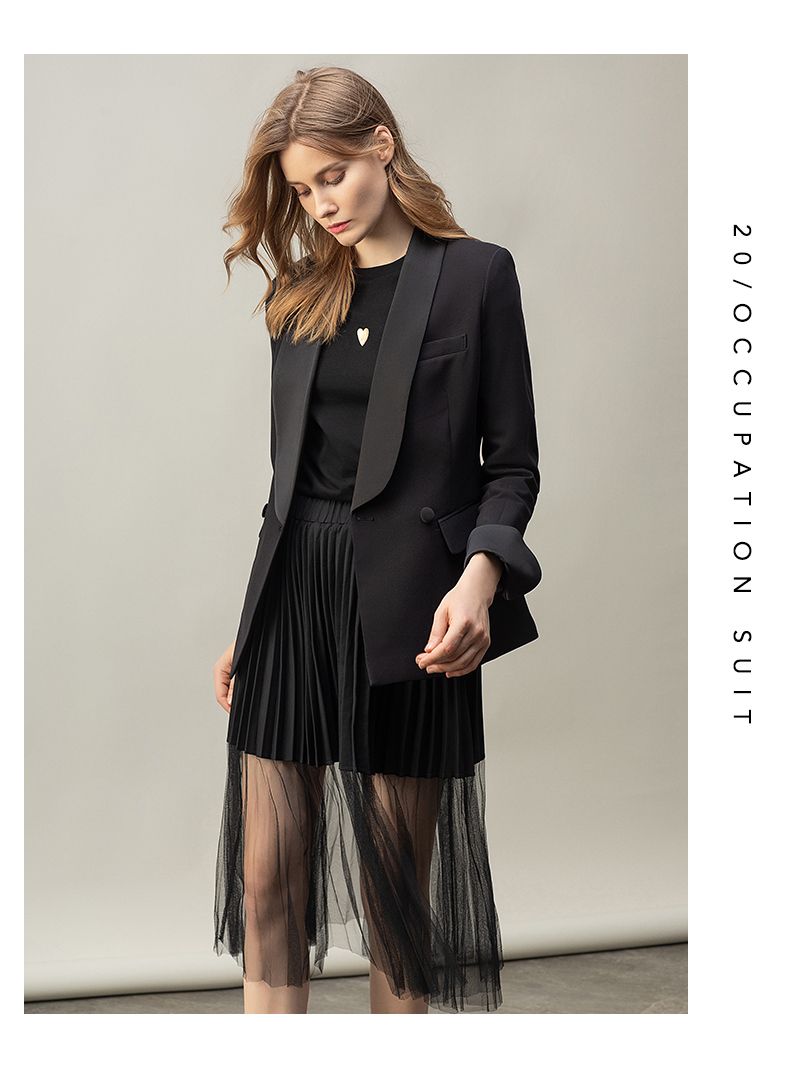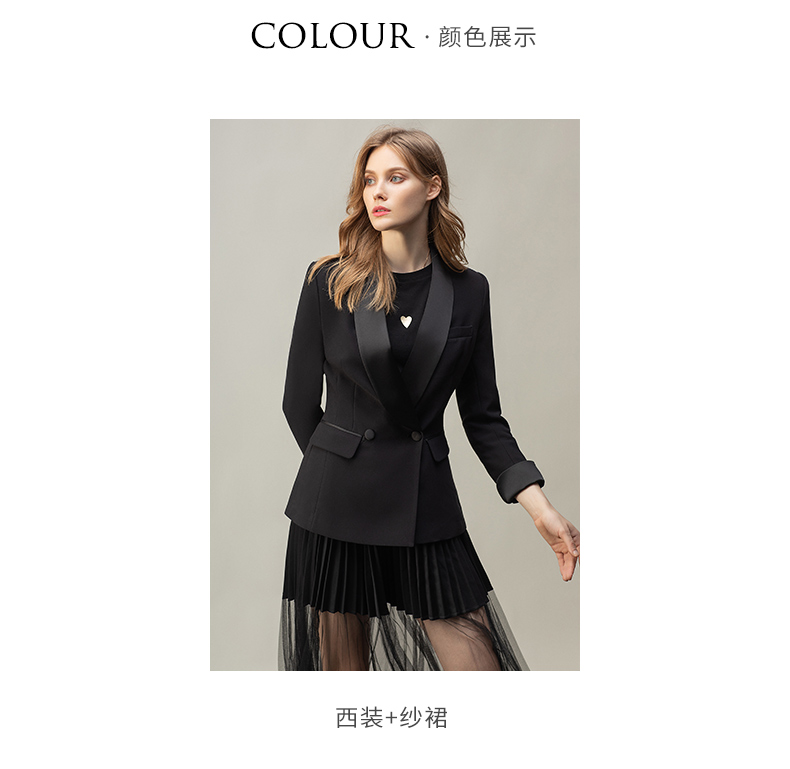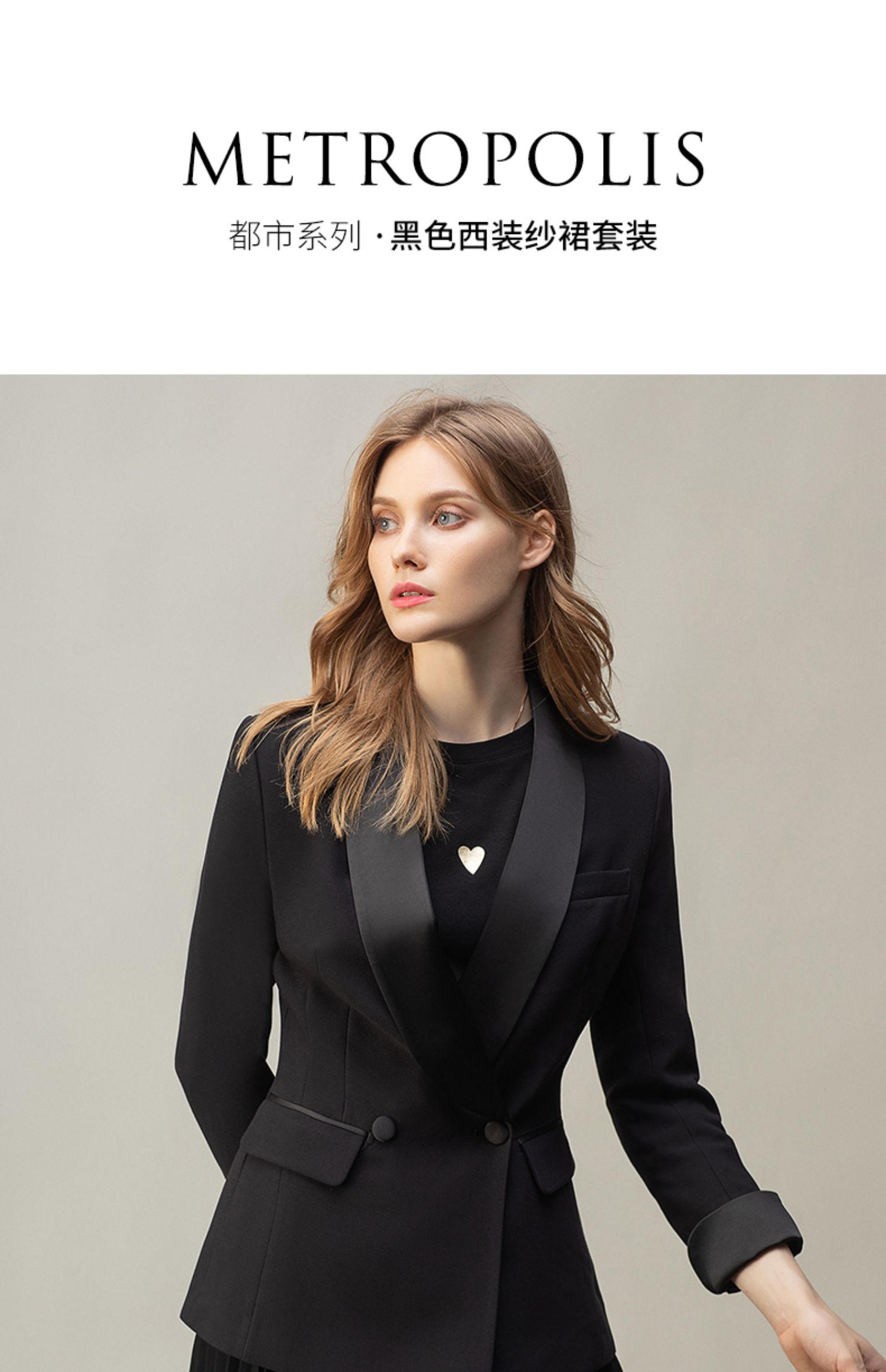 IWY/气质优雅黑色纱裙西装外套女时尚百搭通勤职业裙装工作服C10380+7500457
