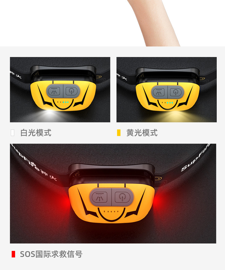 SUPERFIRE神火HL05-S头灯强光感应夜钓充电超亮超长续航户外头戴式钓鱼灯