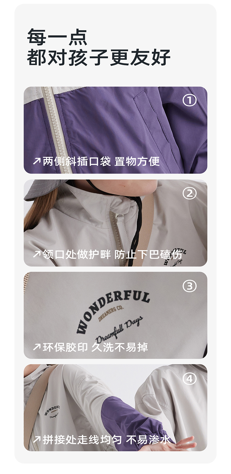 【DWR微拒水 轻户外工装外套】儿童撞色拼接外套 PCWT2401