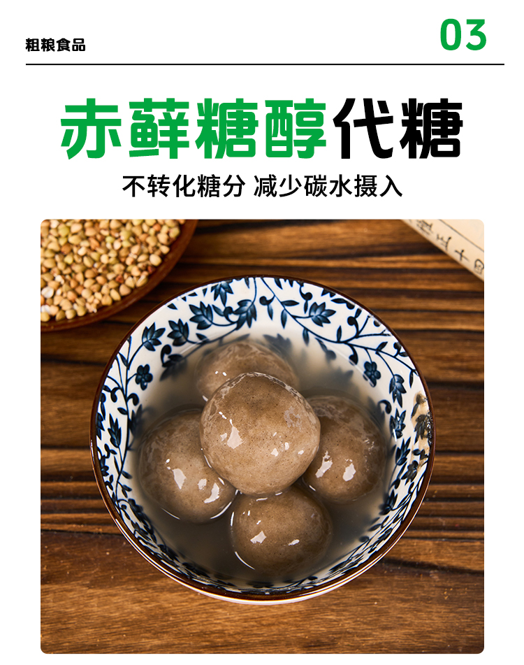 同时荞麦汤圆不添加蔗糖,选用赤藓糖醇代糖,