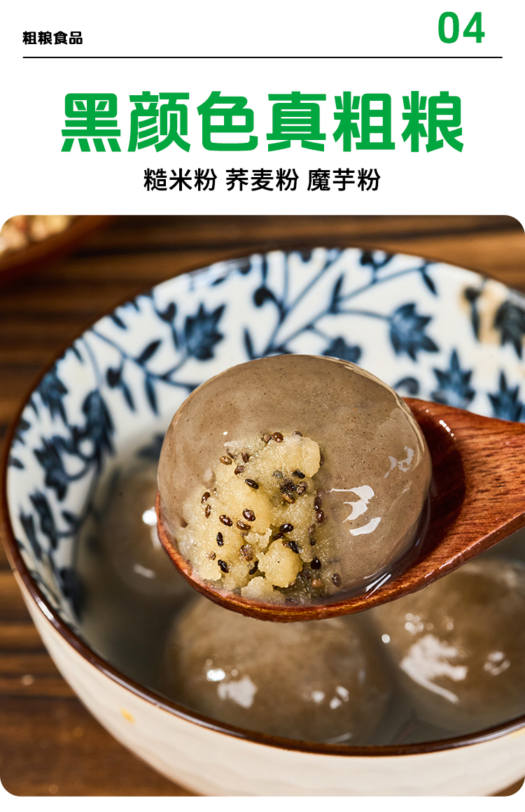而我们这款荞麦汤圆中使用的荞麦粉大于50%,