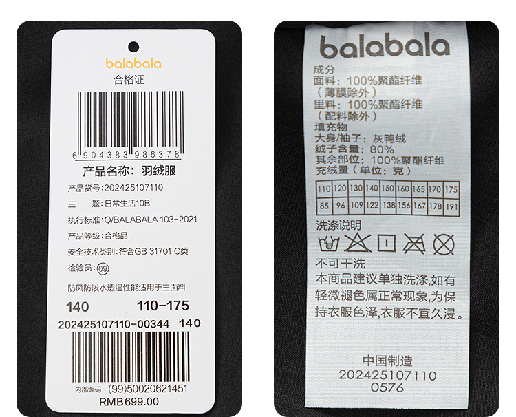 【商场同款】巴拉巴拉儿童羽绒服男童连帽童装2025冬新款防护保暖