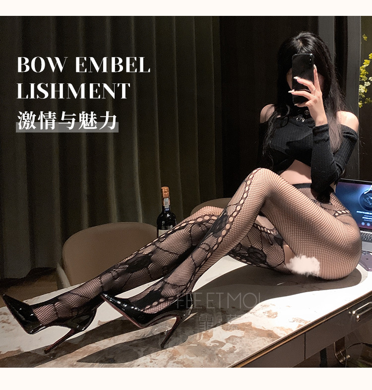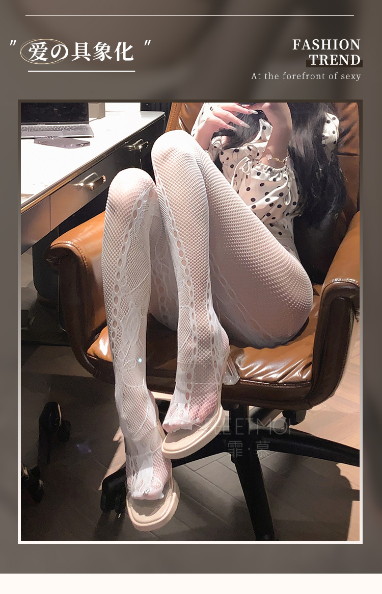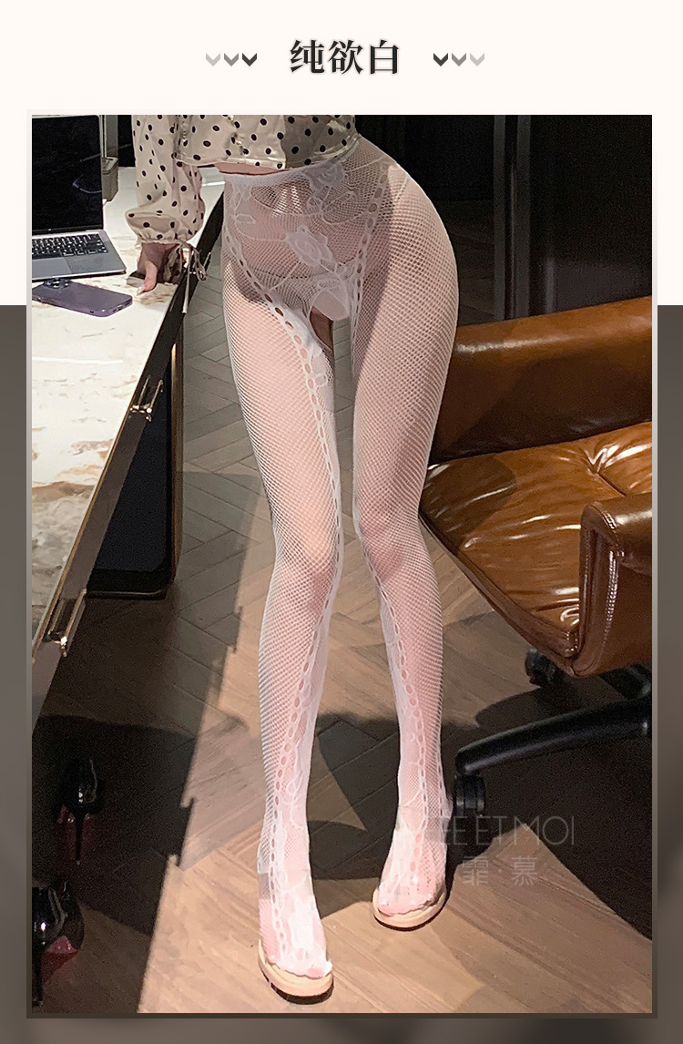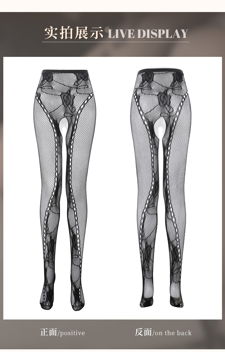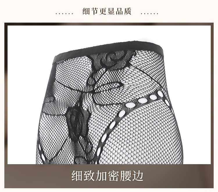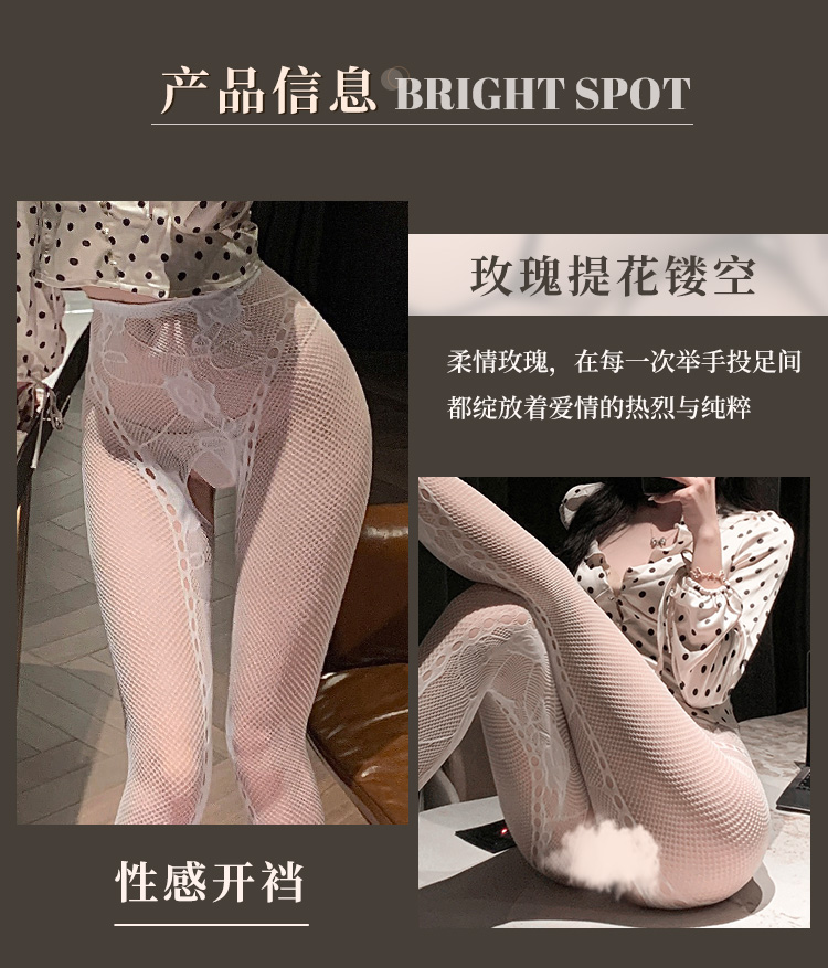 霏慕千禧辣妹玫瑰提花开裆连裤网袜7319 情趣内衣镂空黑丝白丝性感诱惑丝袜