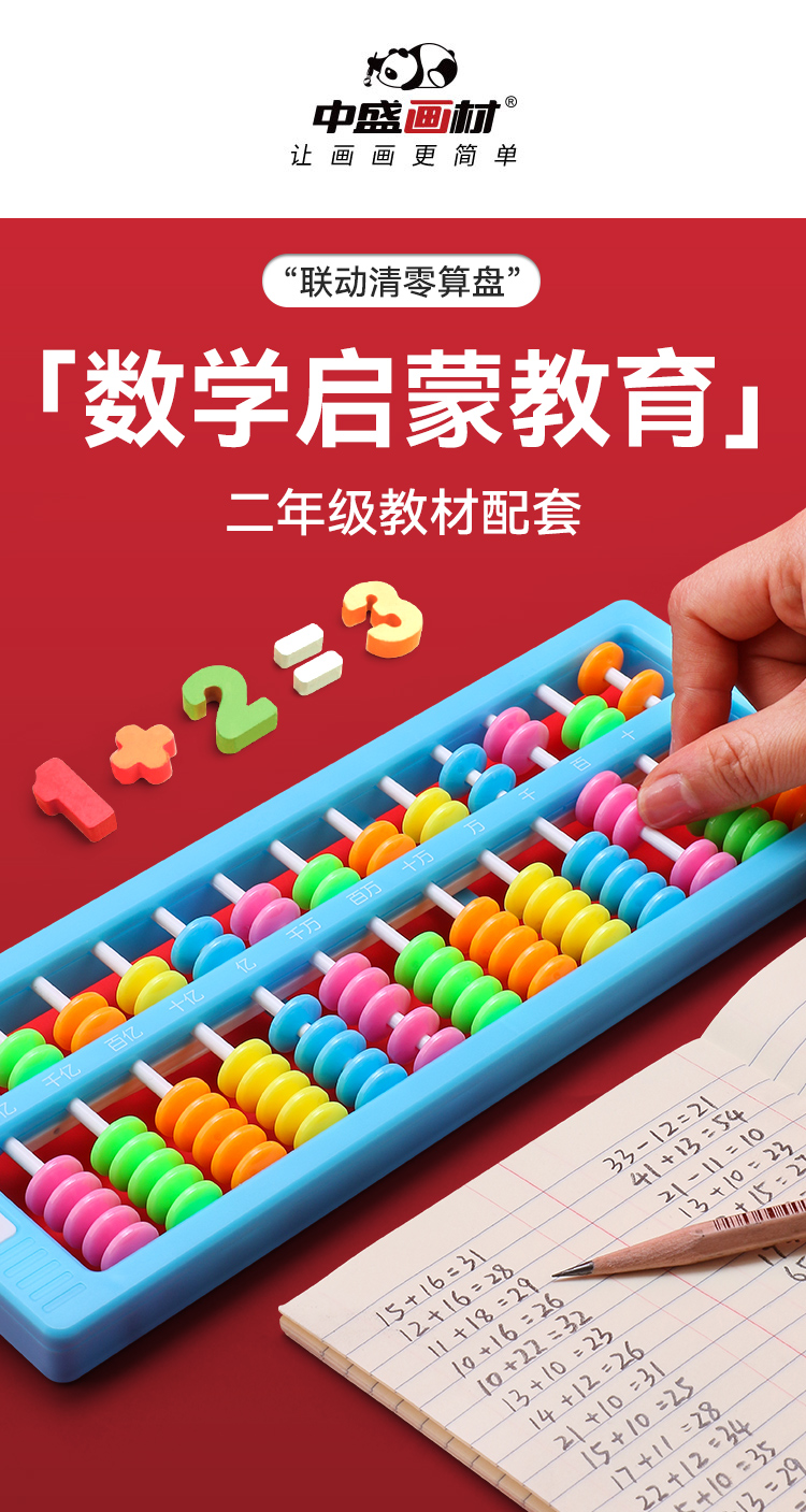算盘小学生一二年级下册专用数学儿童算盘珠心算幼儿园宝宝迷你玩具计数器自动清零学习启蒙教材学具