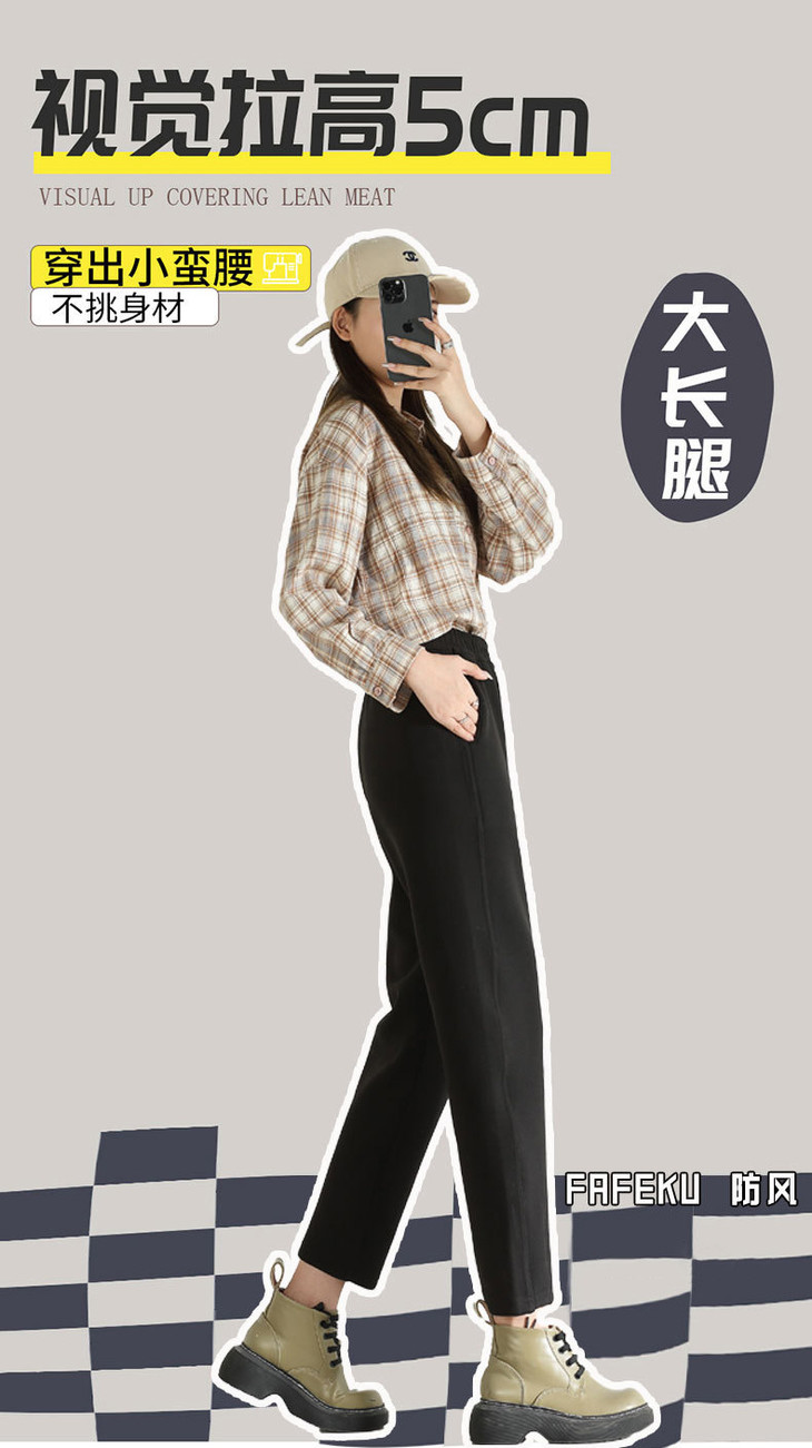 更重要的是它美化腿型的效果😃 更是堪称奇迹换腿术⚡️ 像这种哈伦版型的裤子就是可以藏肉⭕️ 不管是O型腿、X型腿还是小粗腿 都能无声无息地帮你遮住✅ 而且视觉上还有拉长双腿的即视感 就连哈比特星人也能穿出一米八大长腿🤣 臀部后翘提臀线,杜绝扁塌的臀部, 很适合梨型身材、有妈妈臀困扰的女生‼️