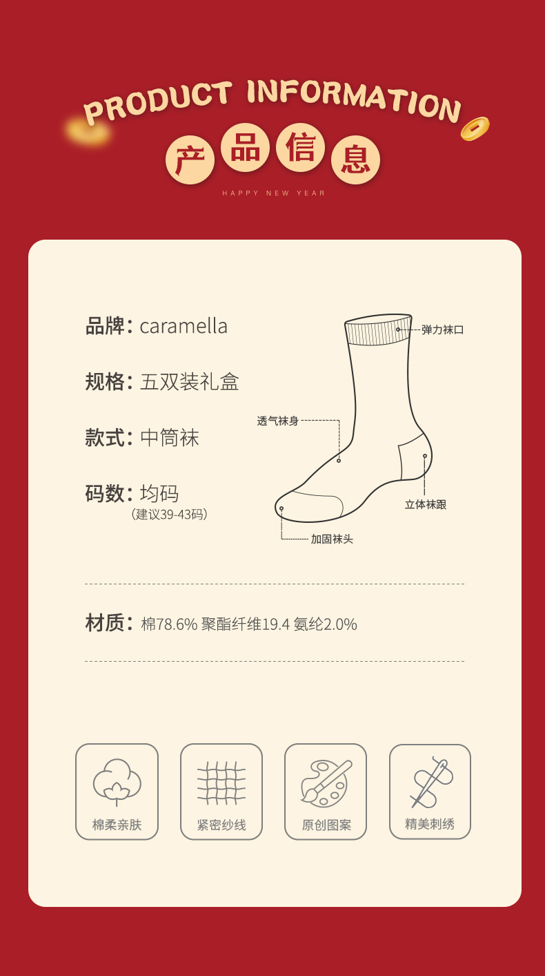 ⁴【成人过年红袜】 34码-39码可选 YC04-CR-BDT
