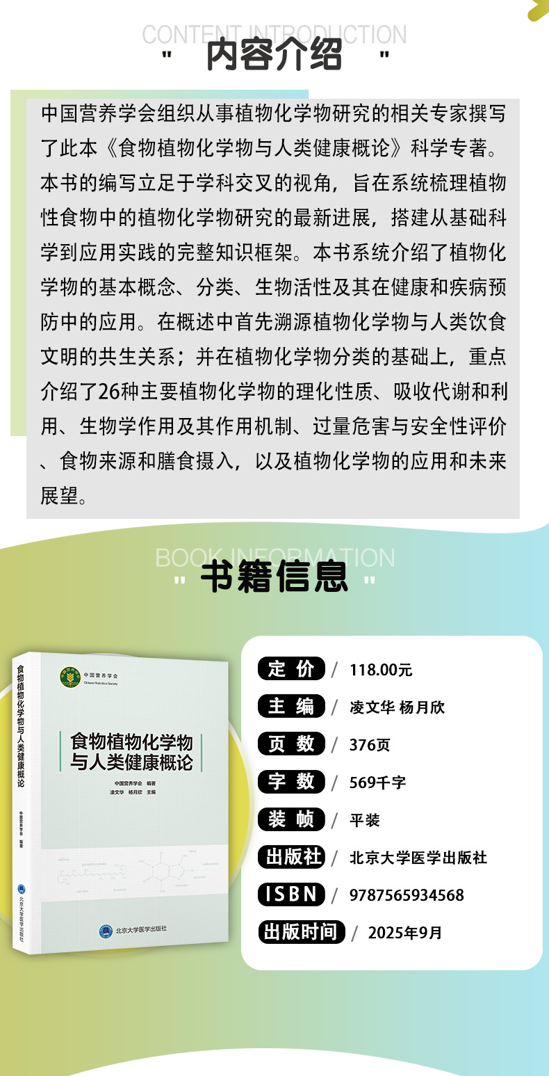 食物植物化学物与人类健康概论 中国营养学会 系统梳理植物性食物中的植物化学物研究的新近进展 9787565934568北京大学医学出版社