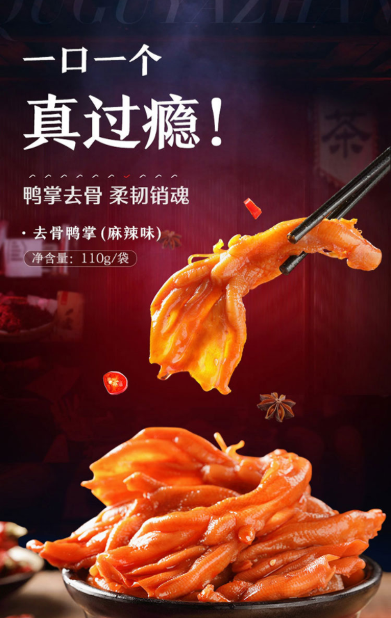 良品铺子 无骨去骨鸭爪鸭掌鸭脚 卤味辣味脱骨鸭肉脯零食独立包装110g