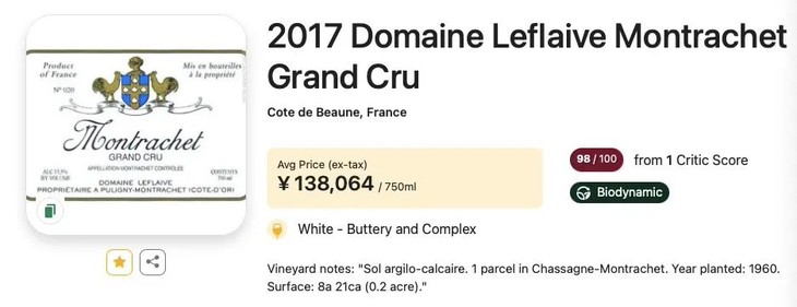 而疫情这两年勃艮第葡萄酒更是受到了全球富豪的疯抢,导致价格一路狂飙,现在双鸡酒庄的Montrachet(蒙哈榭)都要卖到14万RMB一瓶了。。。而且各个年份均价也都超过了13万,可以说一瓶双鸡蒙哈榭绝对是亿万富豪身份和财富的象征了!
