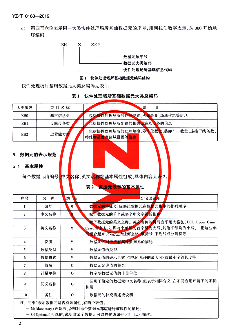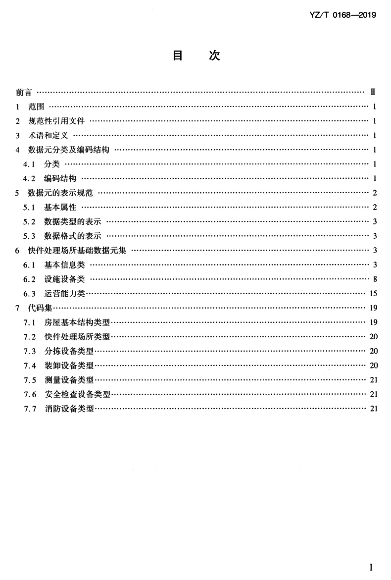 快件处理场所基础数据元(YZ/T 0168—2019)