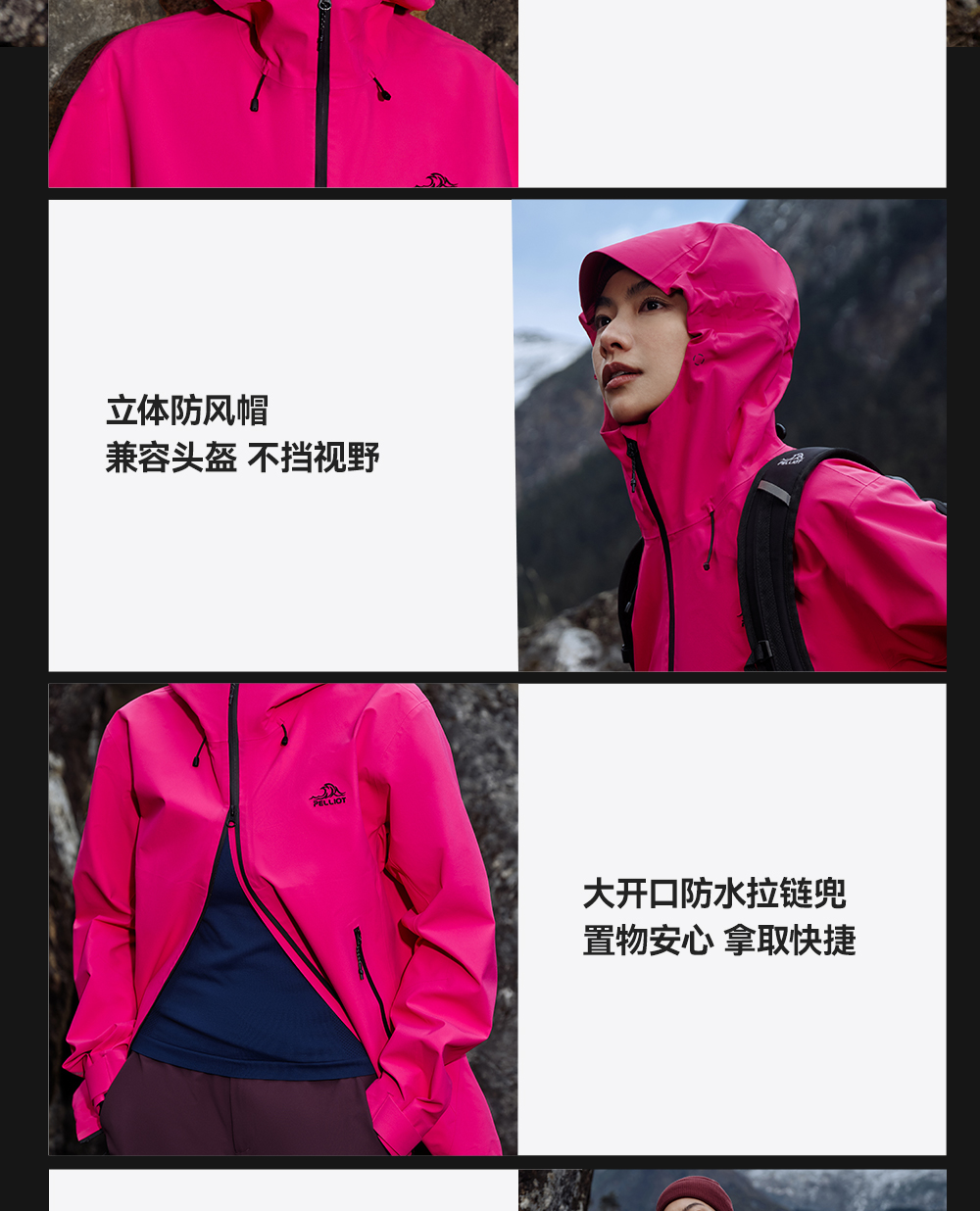 【新色发售】伯希和[岩壳]户外雾桃粉色硬壳冲锋衣专业防暴雨外套