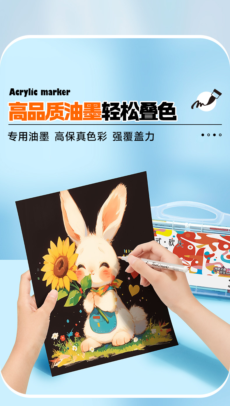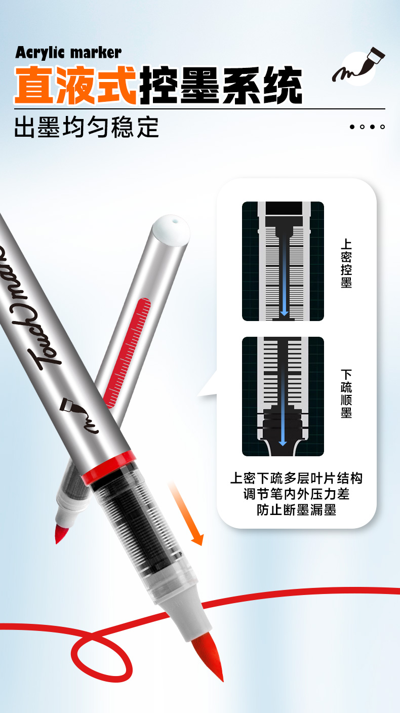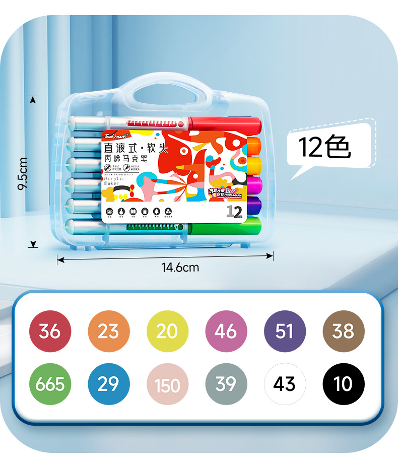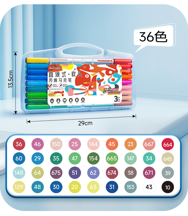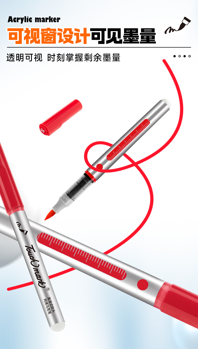 【开学直降】Touchmark直液式软头丙烯马克笔经典pp盒款可补单只笔