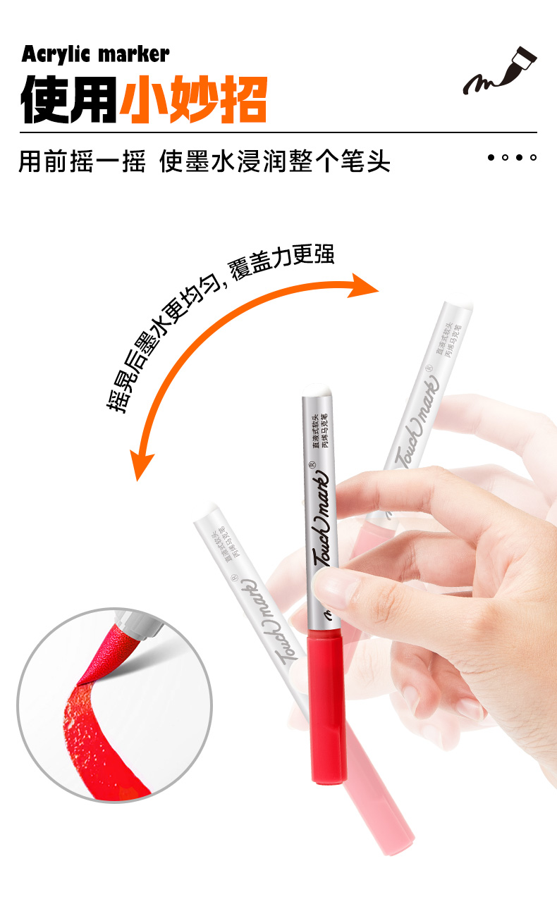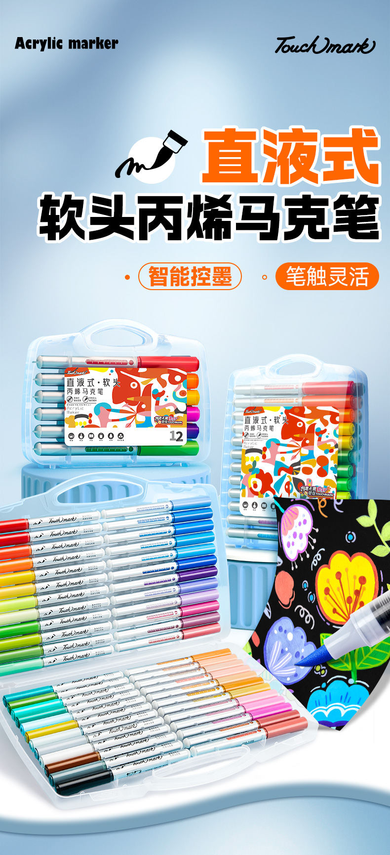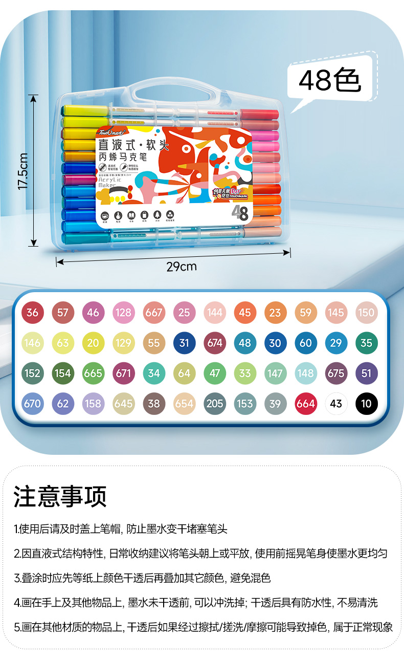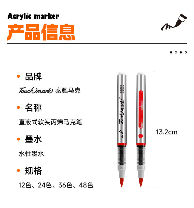 【开学直降】Touchmark直液式软头丙烯马克笔经典pp盒款可补单只笔