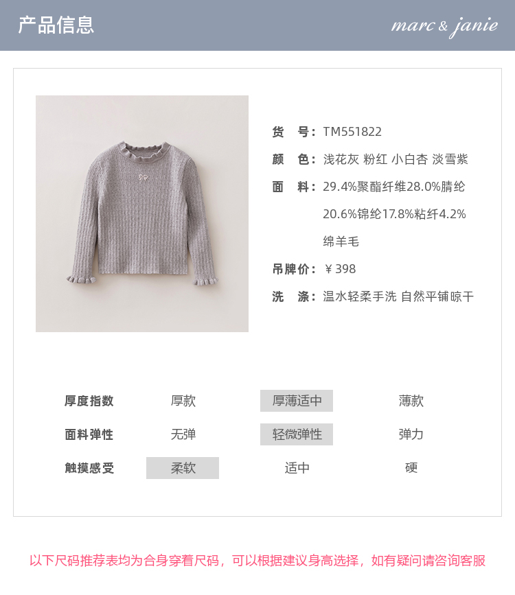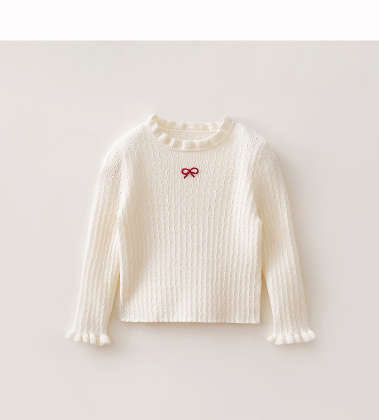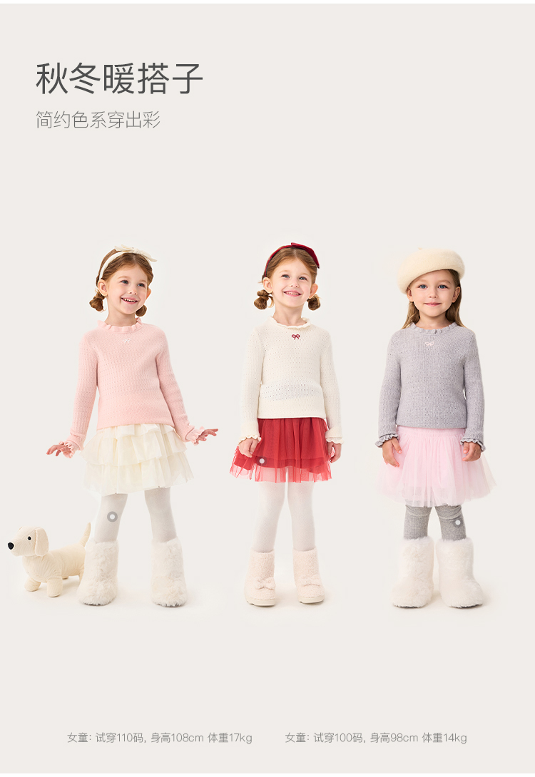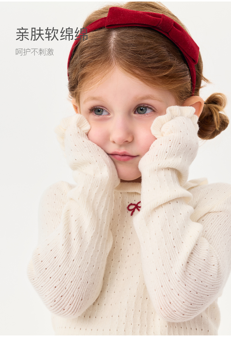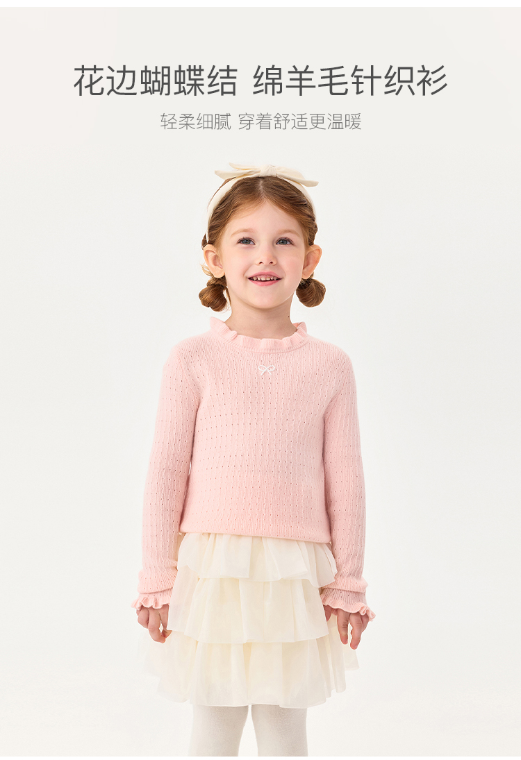 马克珍妮女童花边蝴蝶结绵羊毛针织衫2025年秋冬新款551822