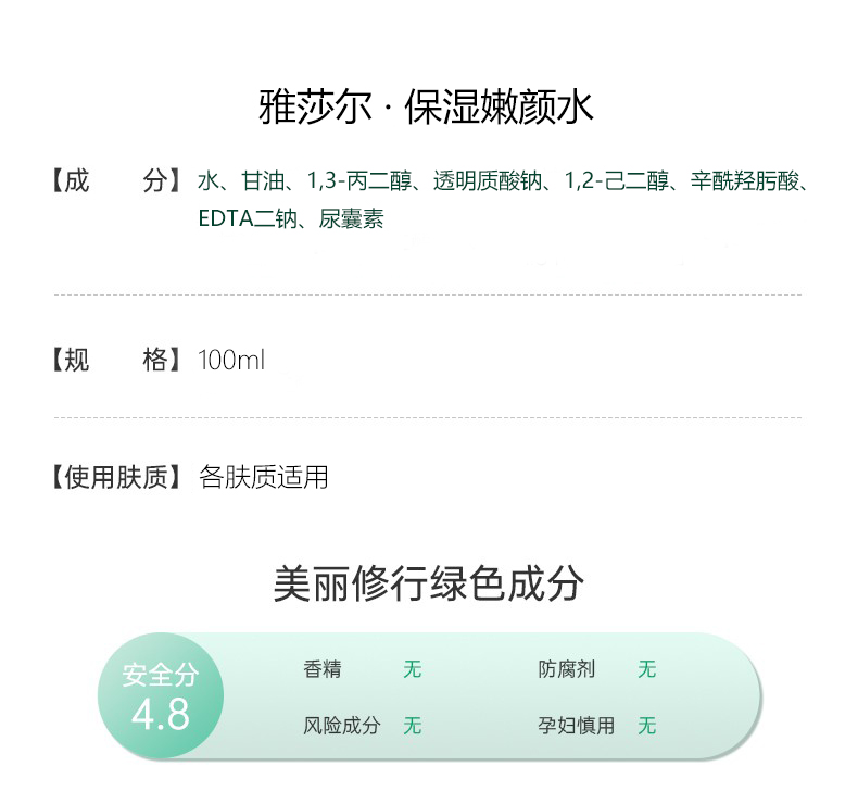 雅莎尔保湿嫩颜水100ml