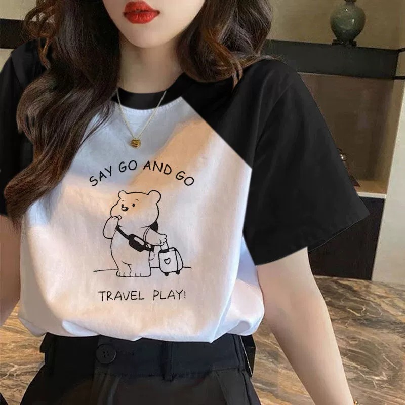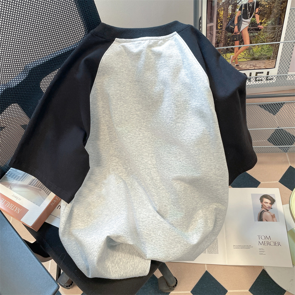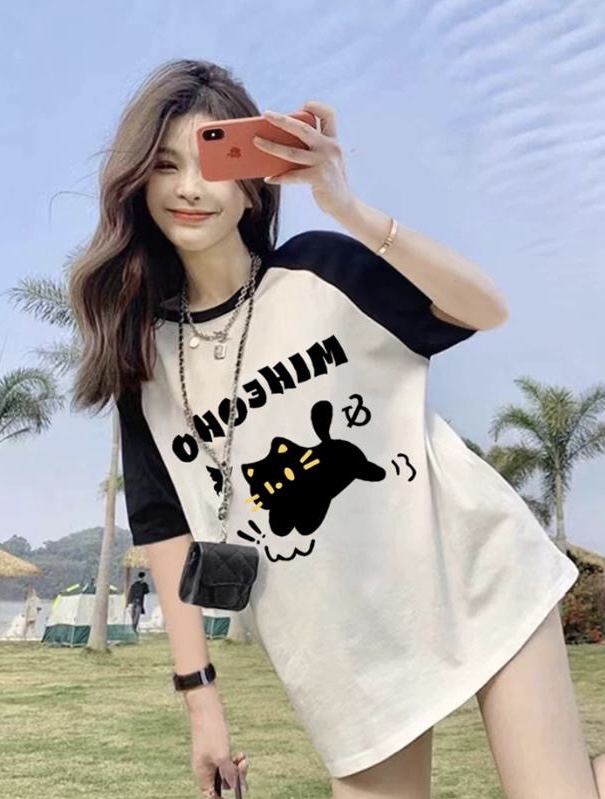 【YW】无忧购韩版卡通字母印花220g纯棉插肩袖打底上衣(截单后7-10天发货)