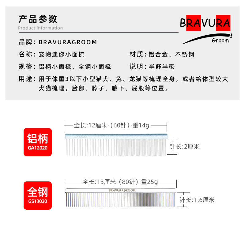 宠物迷你小面梳【#13】GA12020 【#14】GS13020 意大利BRAVURAGROOM